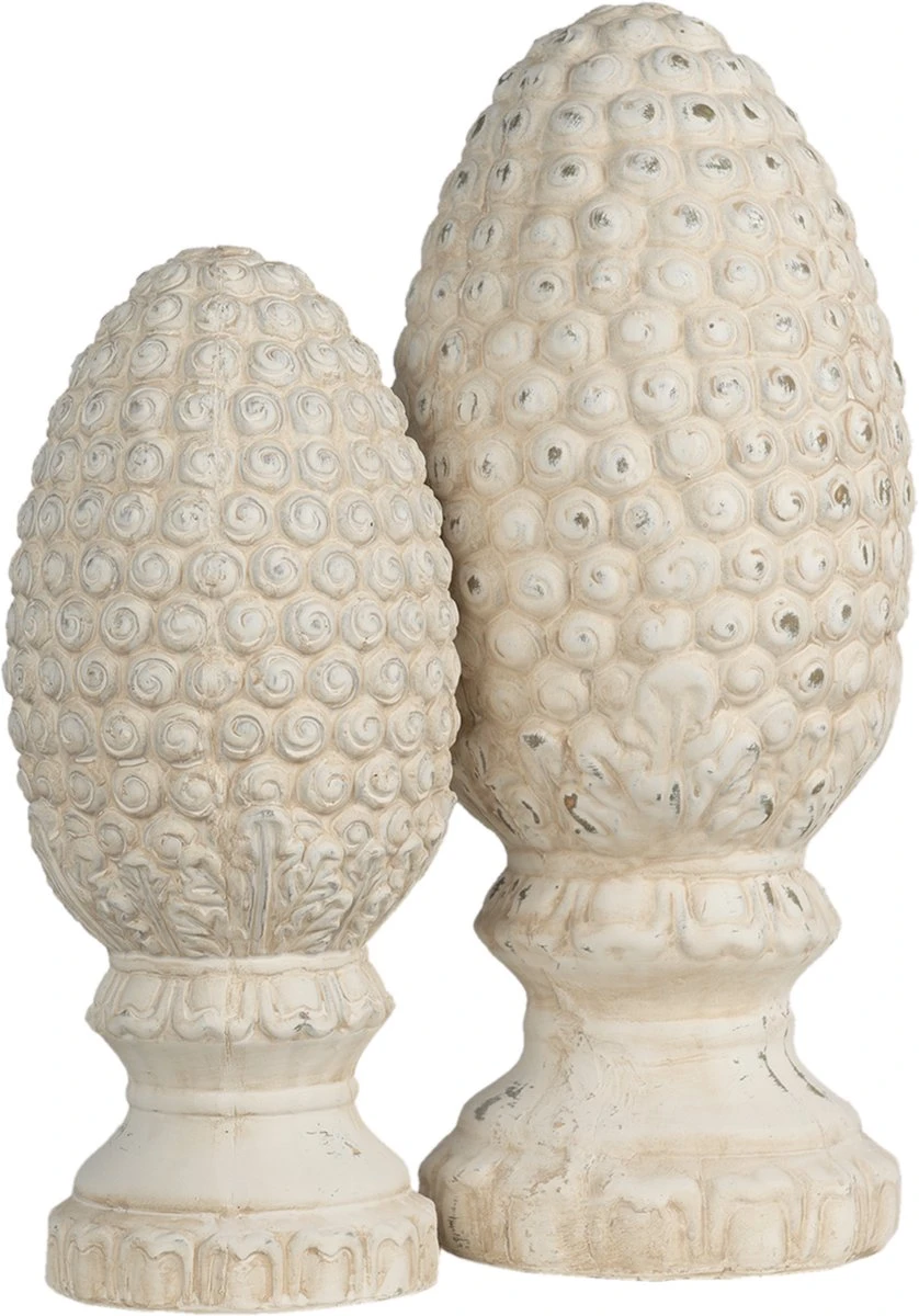 Beeld Kerstdecoratie Dennenappel Beige Steen
