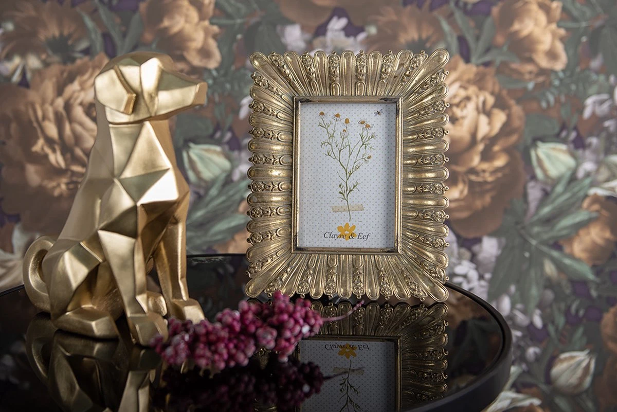 Mooie decoratief goudkleurig beeldje in de vorm van een zittende hond, in een moderne stijl, van het merk Clayre & Eef. Afmeting 20x9x24 cm.Decoratief Figuur Beeld Decoratie