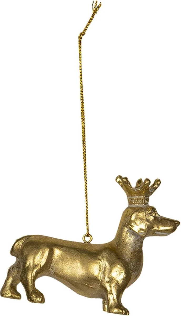 Goudkleurig beeld van een hond met een kroon van het merk Clayre & Eef Woonaccessoires beeld decoratie Decoratieve Accessoires