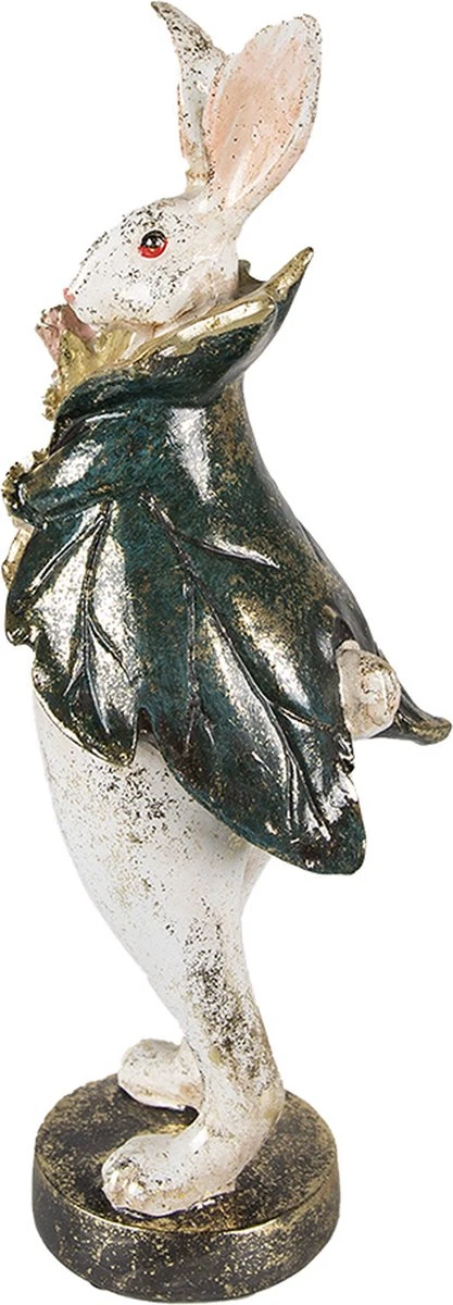 Mooi decoratief beige met groen en goudkleurig konijn met bloemen in de handen in klassieke stijl van het merk Clayre & Eef. Leuk ter decoratie met Pasen.Woonaccessoires Paashaas Pasen