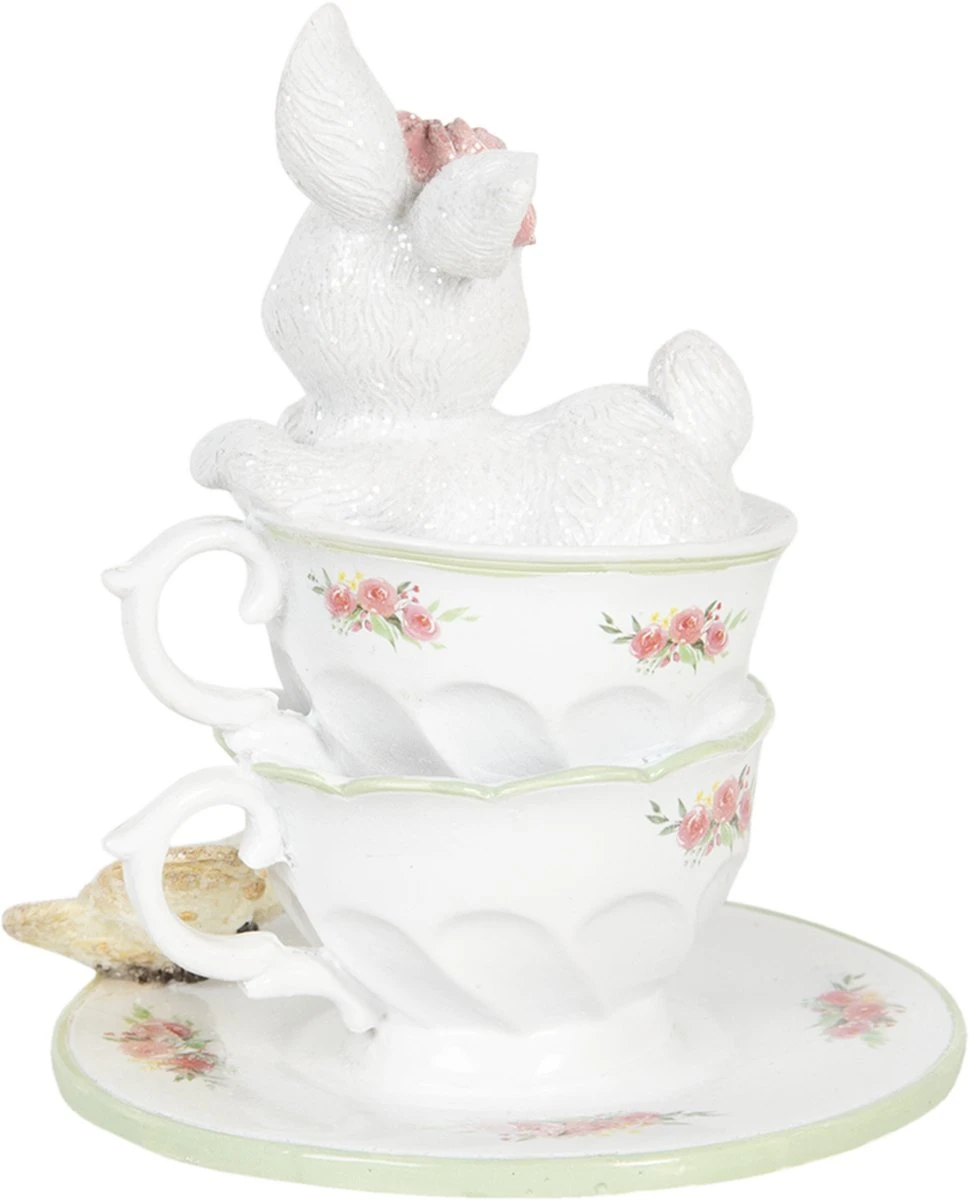 Beeld van een konijn in een kopje van het merk Clayre & Eef Leuke decoratie voor Pasen, mooie paasdecoratie, paashaas. Woonaccessoires Pasen Paashaas