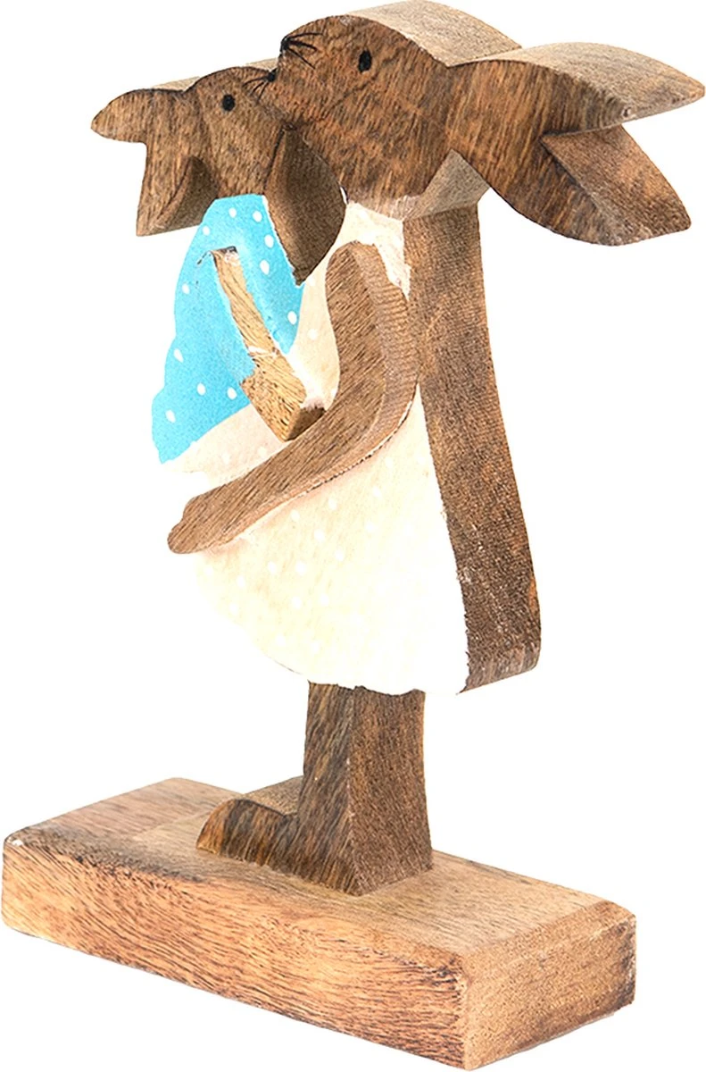 Decoratie BeeldFiguur Konijn Bruin, Roze Hout van het merk Clayre& Eef Woonaccessoires Paashaas Pasen