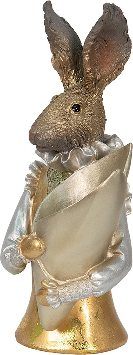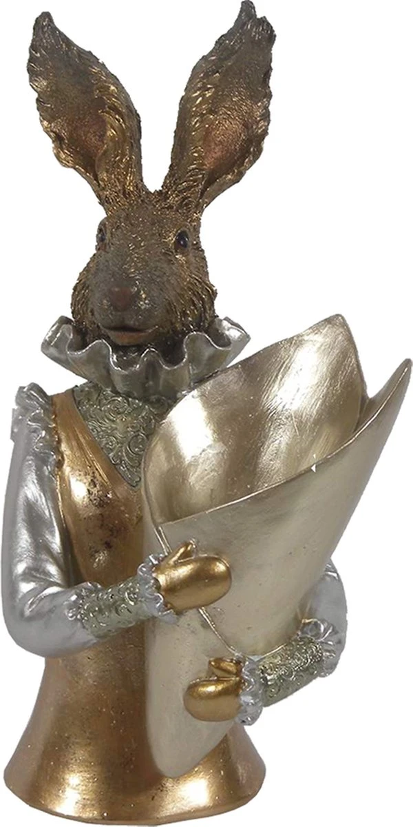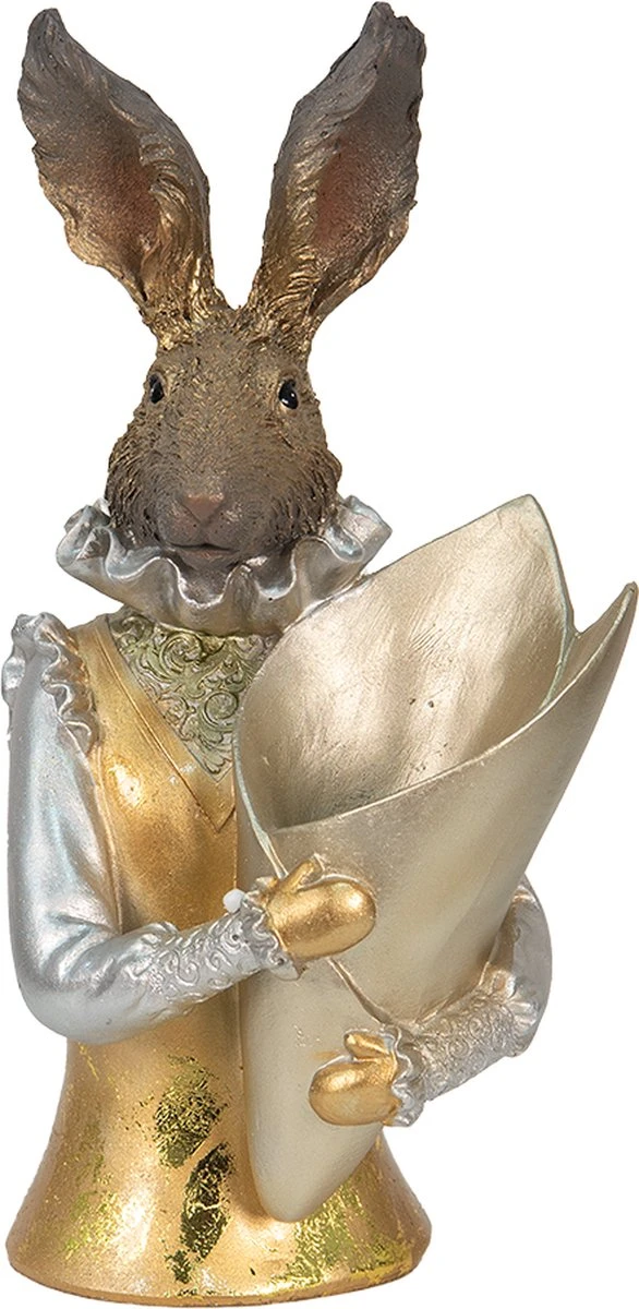 Decoratief goud- met zilverkleurig beeld van een konijn in een klassiek landelijke stijl, van het merk Clayre & Eef. Kleed jou huis leuk en sfeervol aan voor de Pasen met deze schattige paashaas. De paashazen van het merk Clayre & Eef zijn zorgvuldig gemaakt en brengen de voorjaarssfeer in uw huis. Ze zijn prachtig te combineren met onze andere paasdecoratie of zelfgekleurde paaseieren of met een mooi paasboeket. Met deze paasdecoratie zit je gelijk in de gezellige paassfeer.