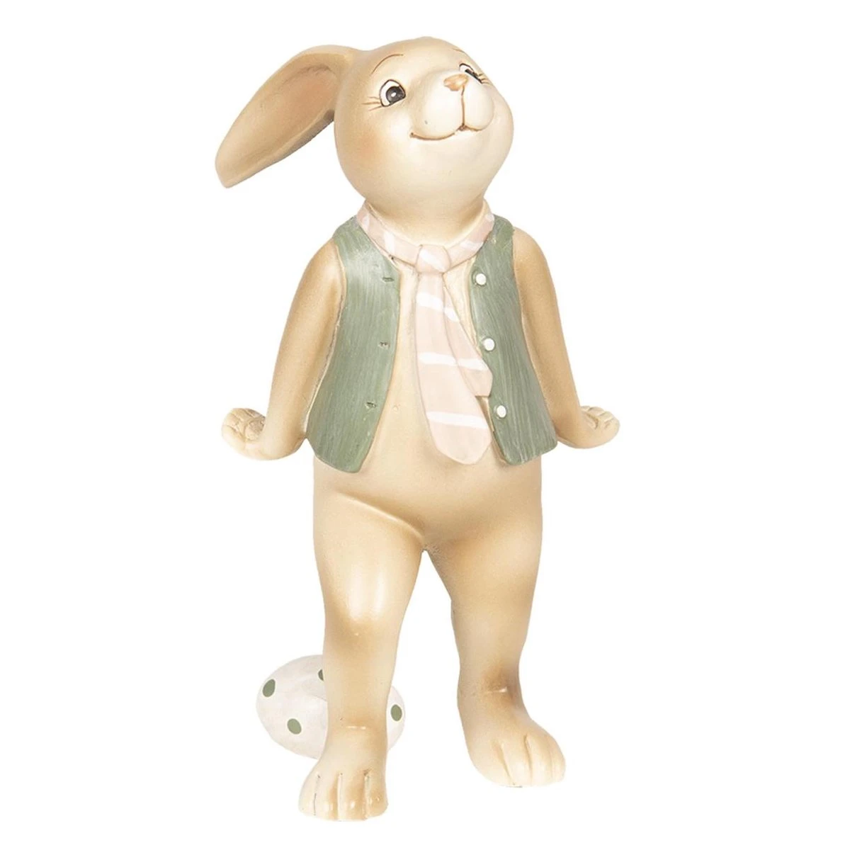 Beeld van een rechtopstaand bruin jong haasje met een ei van het merk Clayre & Eef Leuke decoratie voor Pasen, mooie paasdecoratie, paashaas. Woonaccessoires beeld decoratie Paashaas