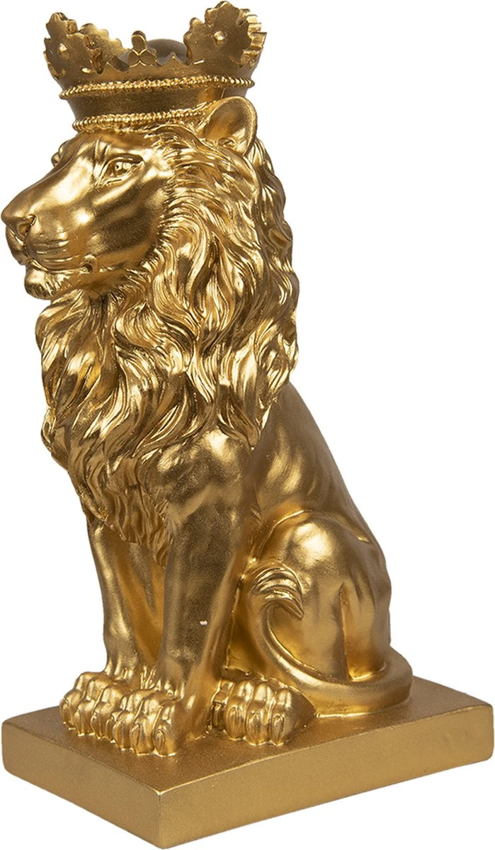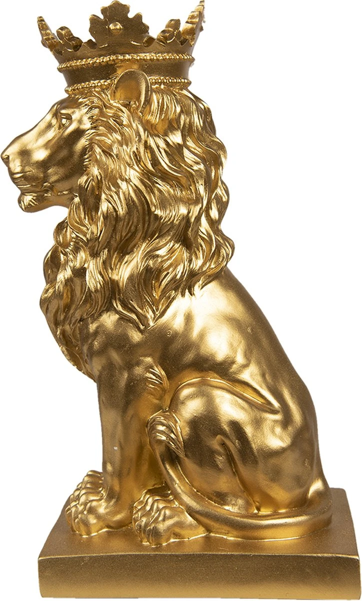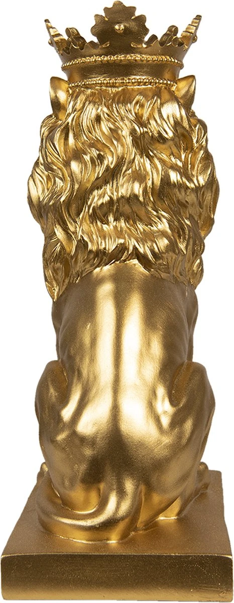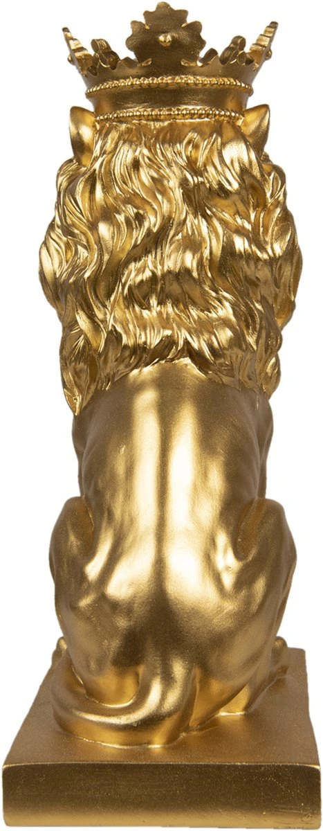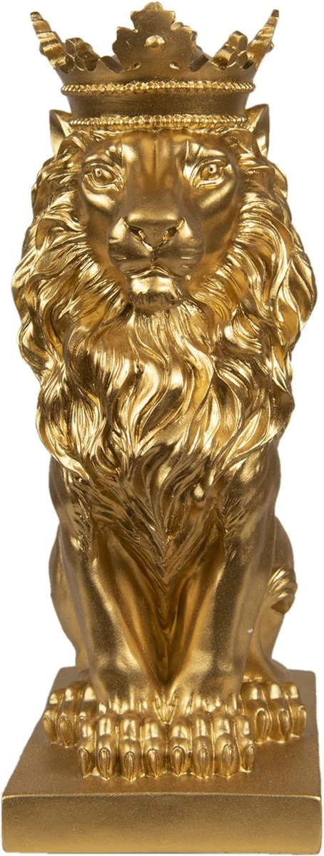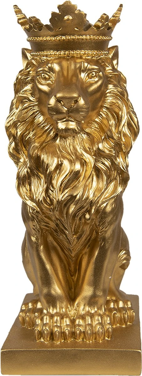 Vintage landelijk goudkleurig decoratie beeld van een zittende leeuw met kroon van het merk Clayre & Eef. Woonaccessoires beeld decoratie Decoratieve Accessoires