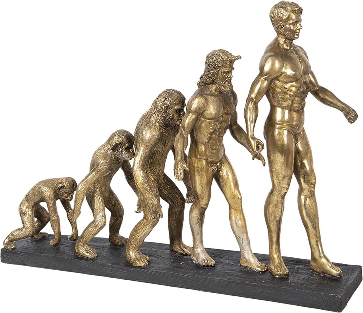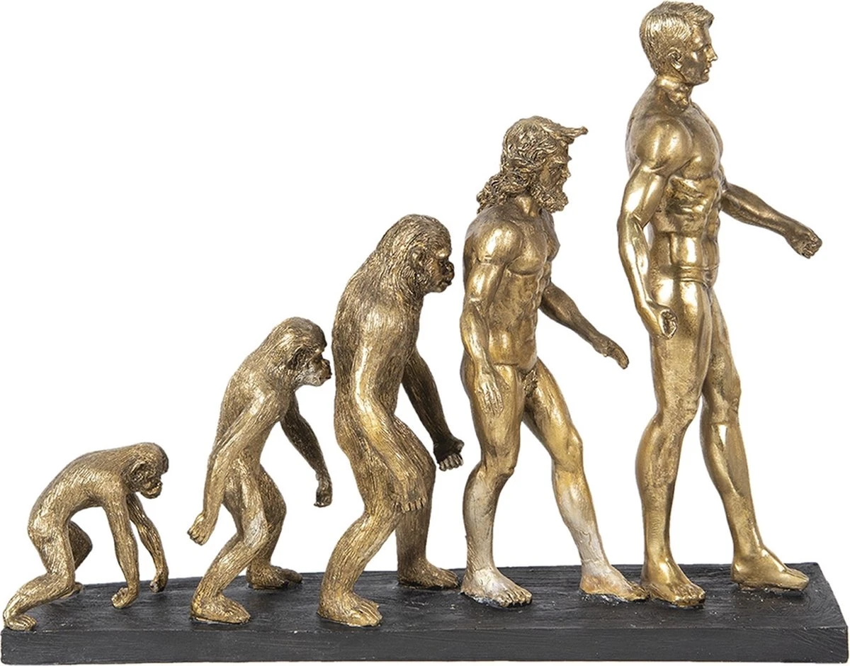 Goudkleurig beeld over de evolutie van de mens van het merk Clayre & Eef Woonaccessoires beeld decoratie Decoratieve Accessoires