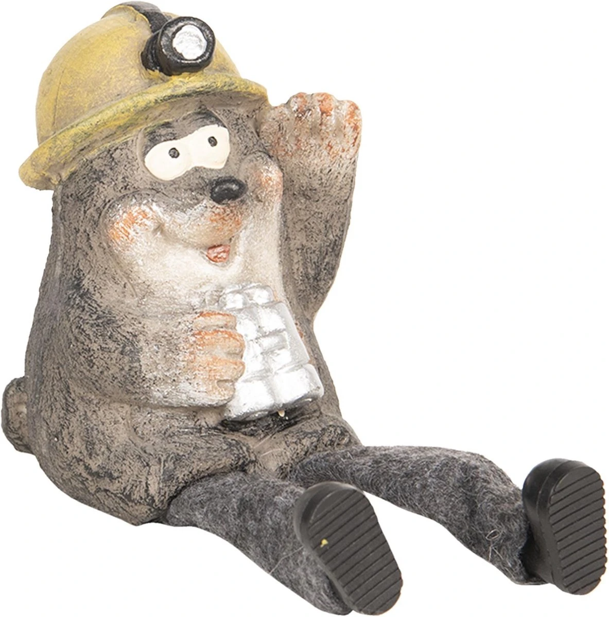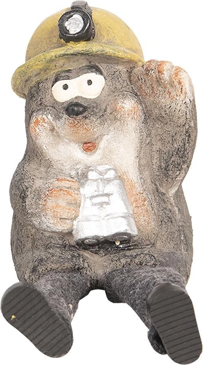 Beeld van een grijze mol in mijnwerkerskleding van het merk Clayre & Eef Woonaccessoires beeld decoratie Decoratieve Accessoires