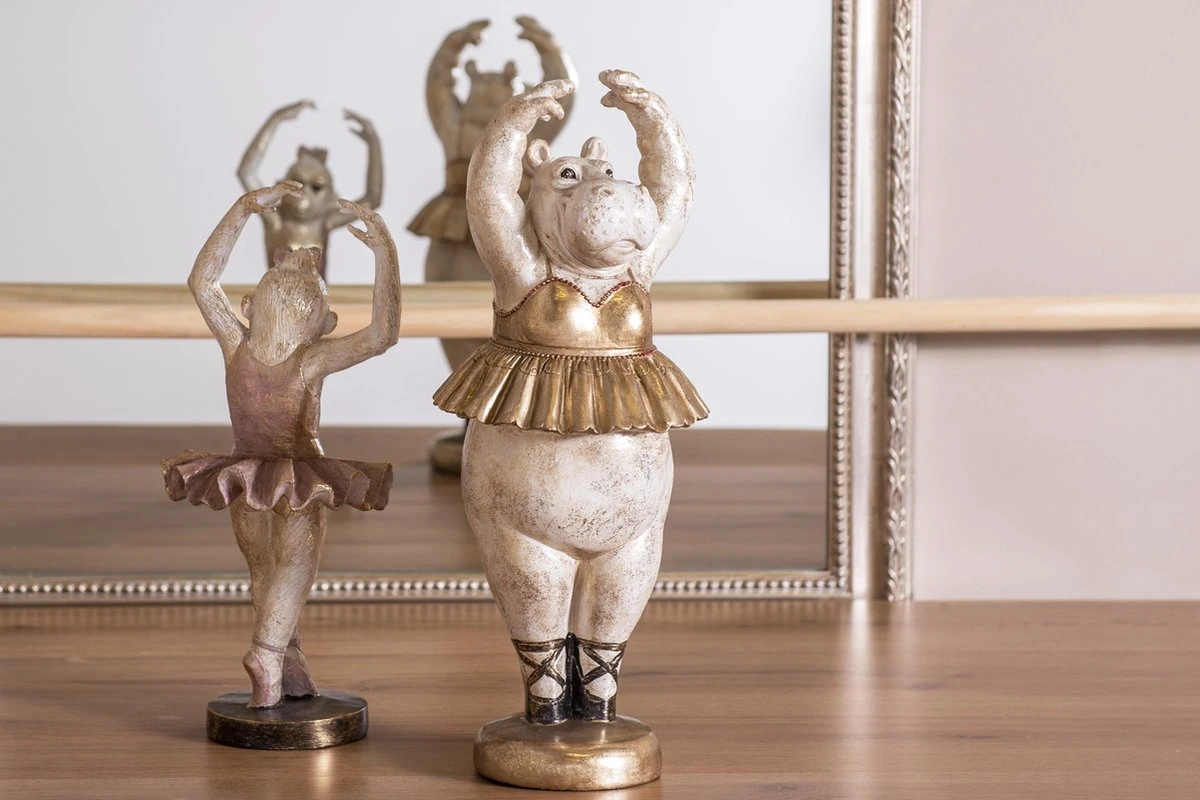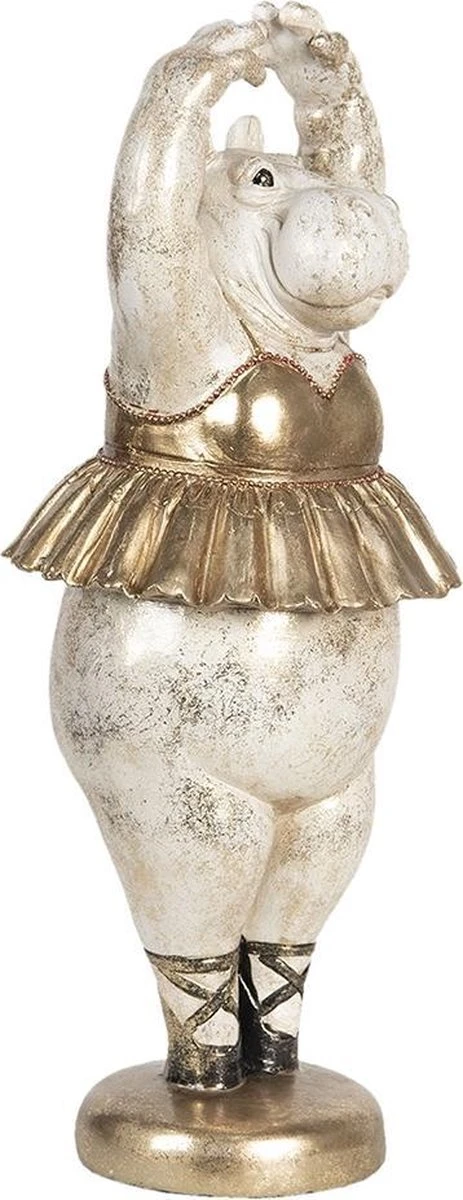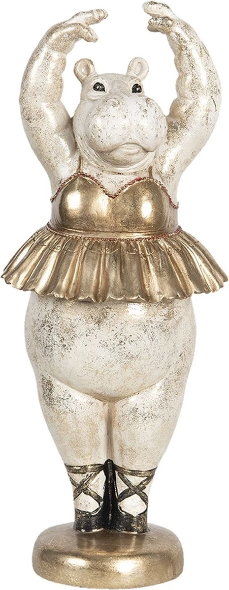 Gouden beeld van een ballerina nijlpaard van het merk Clayre & Eef Woonaccessoires beeld decoratie Decoratieve Accessoires