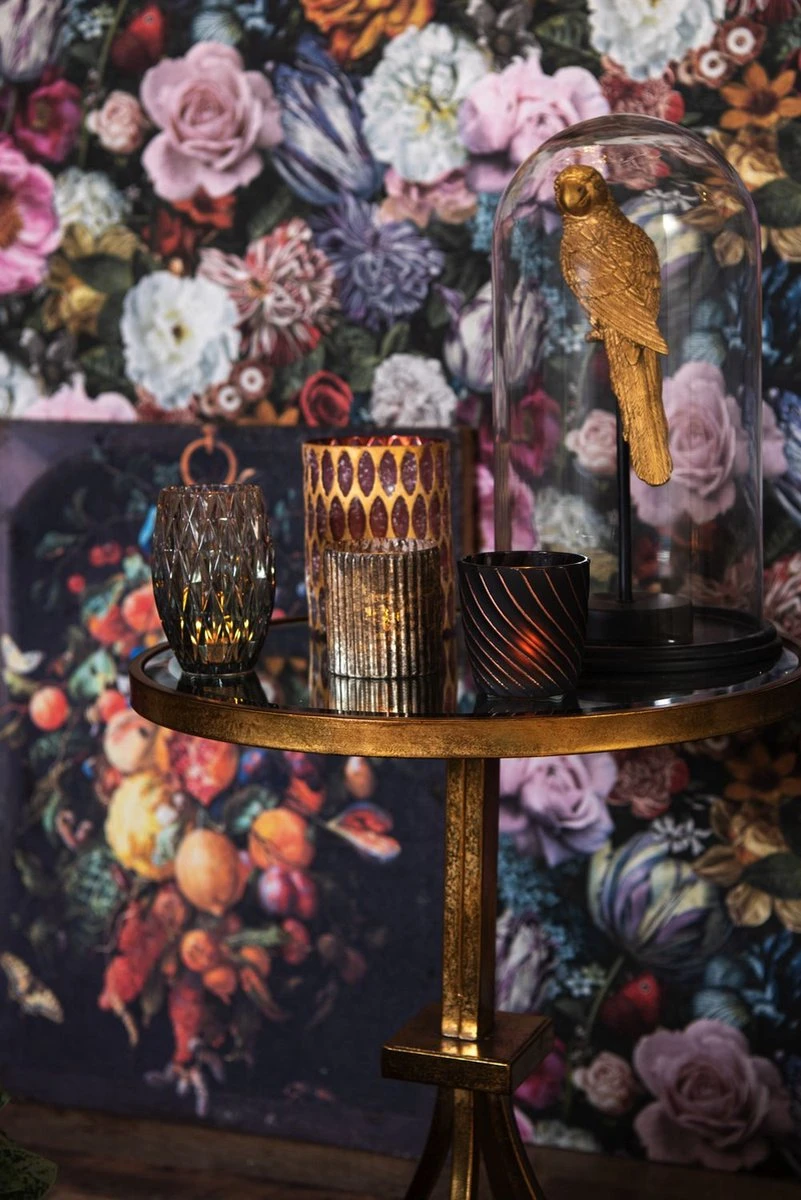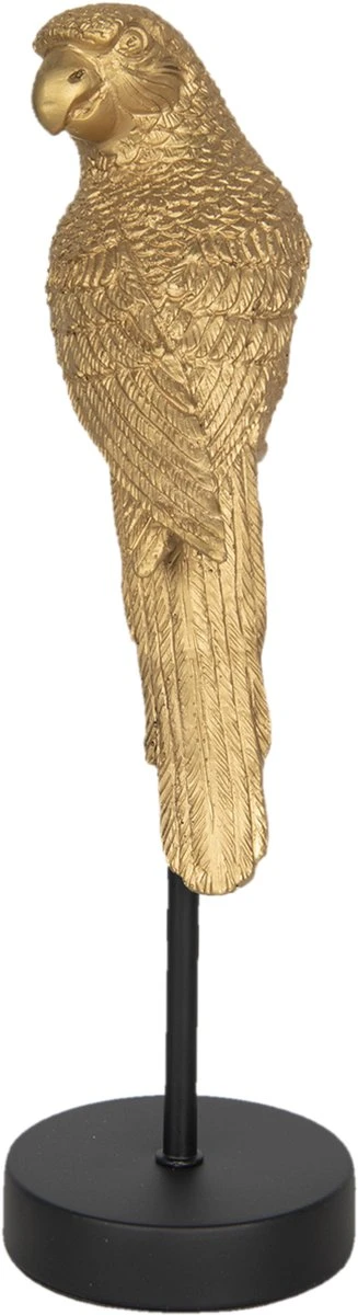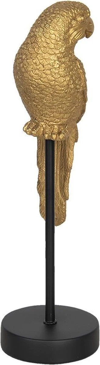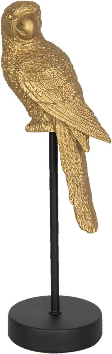 Goudkleurig beeld van een papegaai op een standaard van het merk Clayre & Eef Woonaccessoires beeld decoratie Decoratieve Accessoires