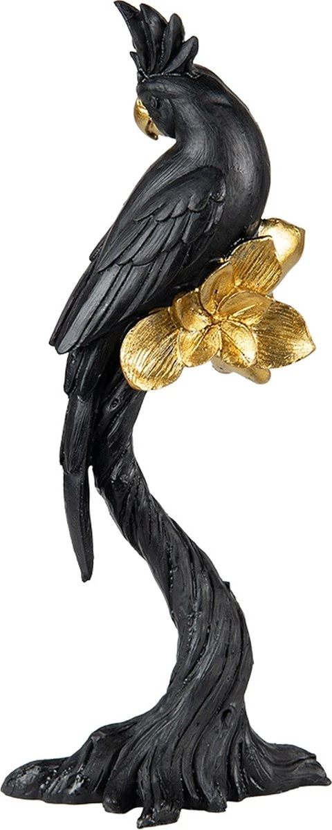 Decoratief zwart met goudkleurig beeldje van een papegaai, in een landelijke stijl, van het merk Clayre & Eef. Afmeting 9x8x22 cm.Woonaccessoires beeld decoratie Decoratieve Accessoires