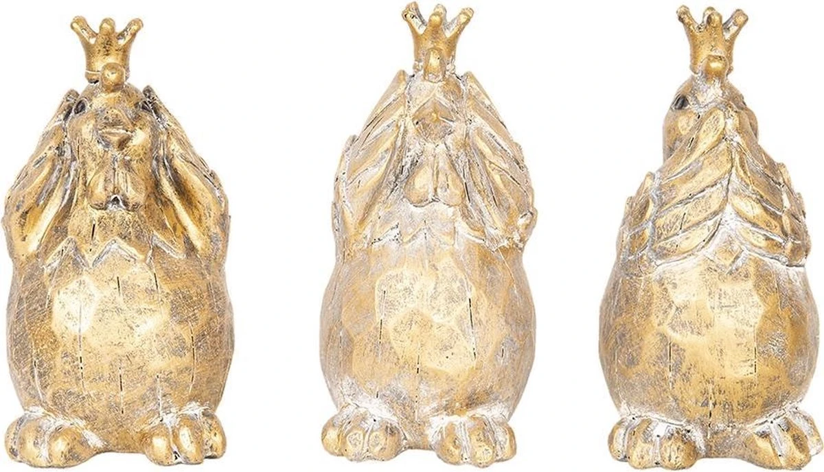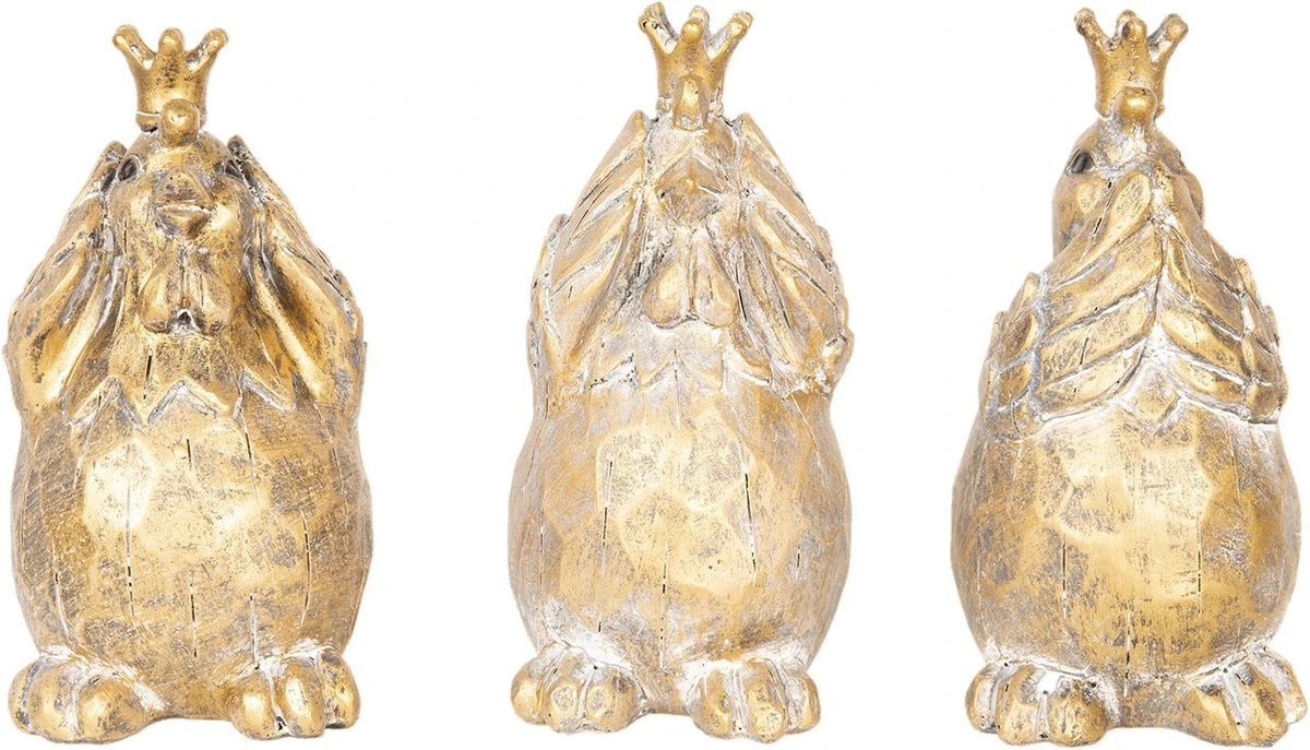 Goudkleurige beelden van hanen ‘horen, zien en zwijgen’ van het merk Clayre & Eef