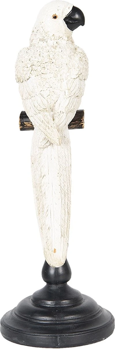 Wit beeld van een papegaai op een zware sokkel van het merk Clayre & Eef