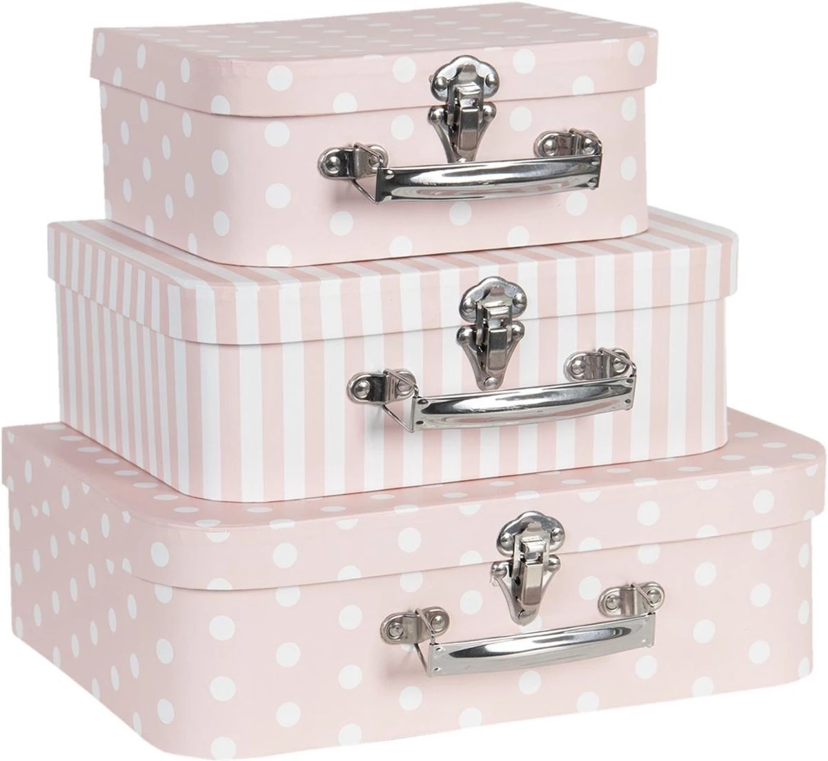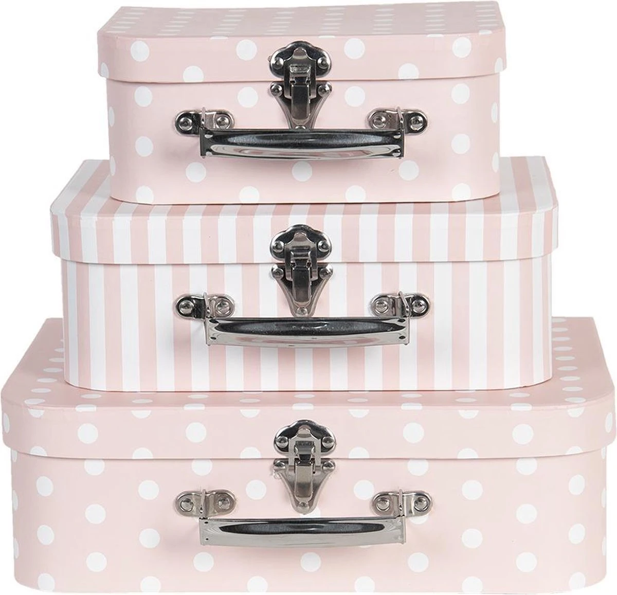 Decoratie koffer Set van 3 Opbergkoffer Roze Karton Opbergkoffer Koffer
