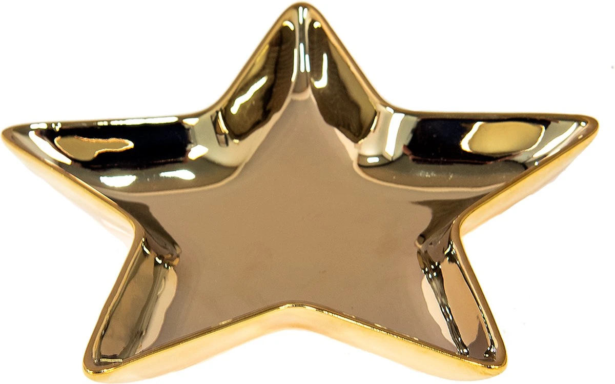 Goudkleurige schaal in de vorm van een ster, van het merk Clayre & Eef. Kaarsenplateau Sleutelbakje Sieradenbakje