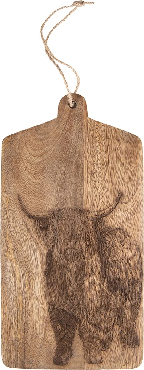Decoratieve houten broodplank met het motief van een stier erop, van het merk Clayre & Eef.