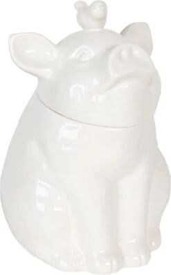 Wit beeld van een varken als voorraadpot van het merk Clayre & Eef. Decoratief Figuur Decoratieve Accessoires Woonaccessoires