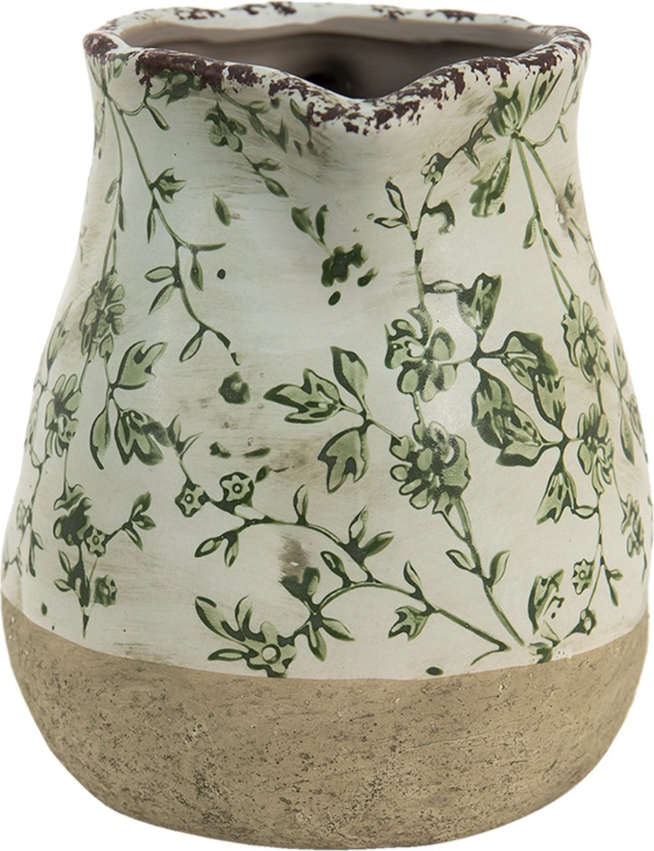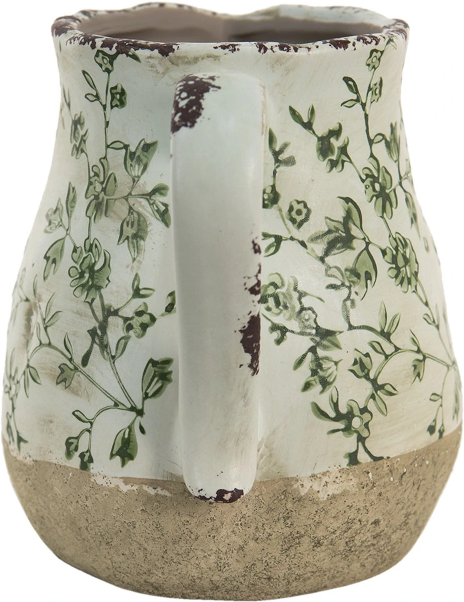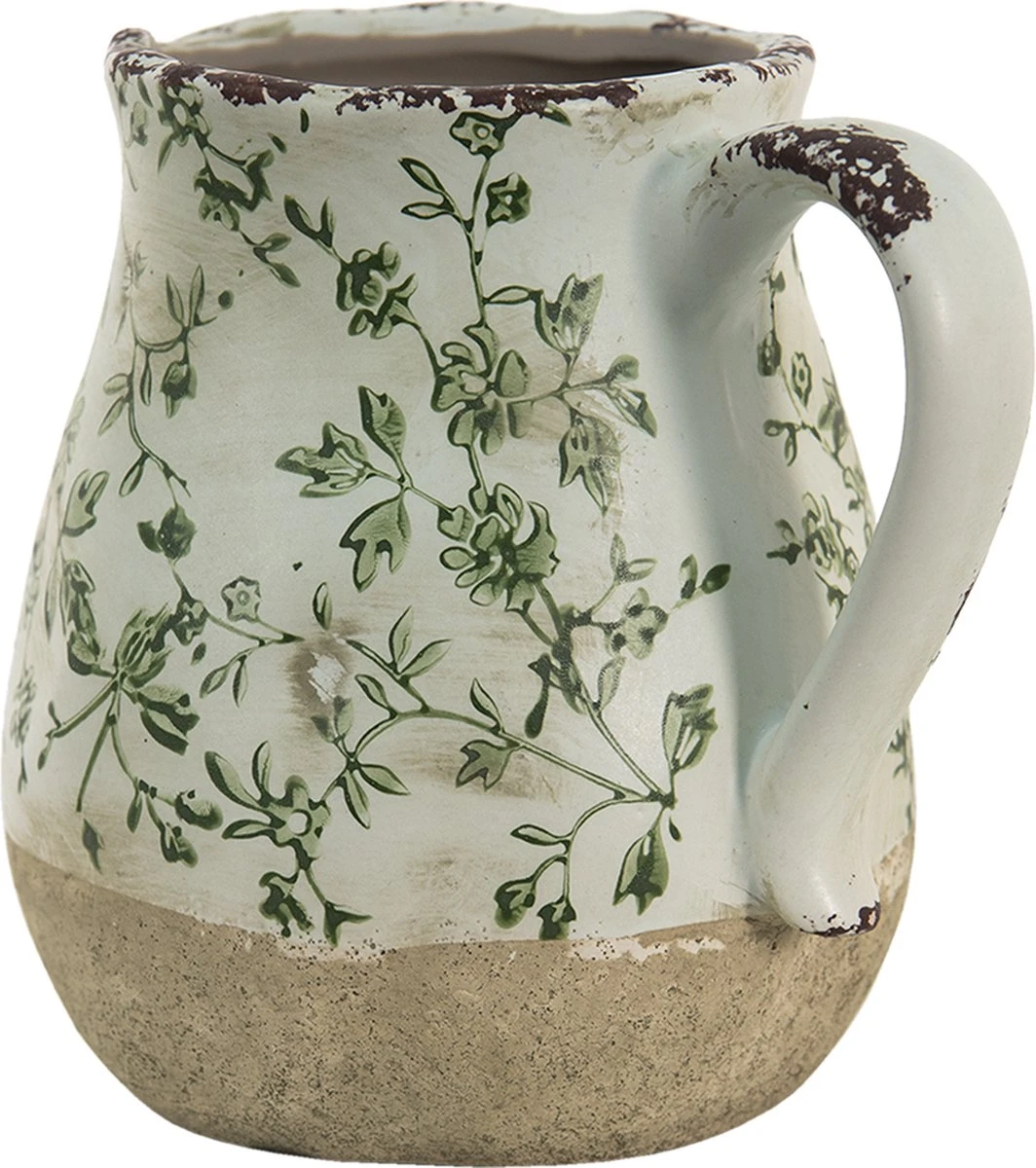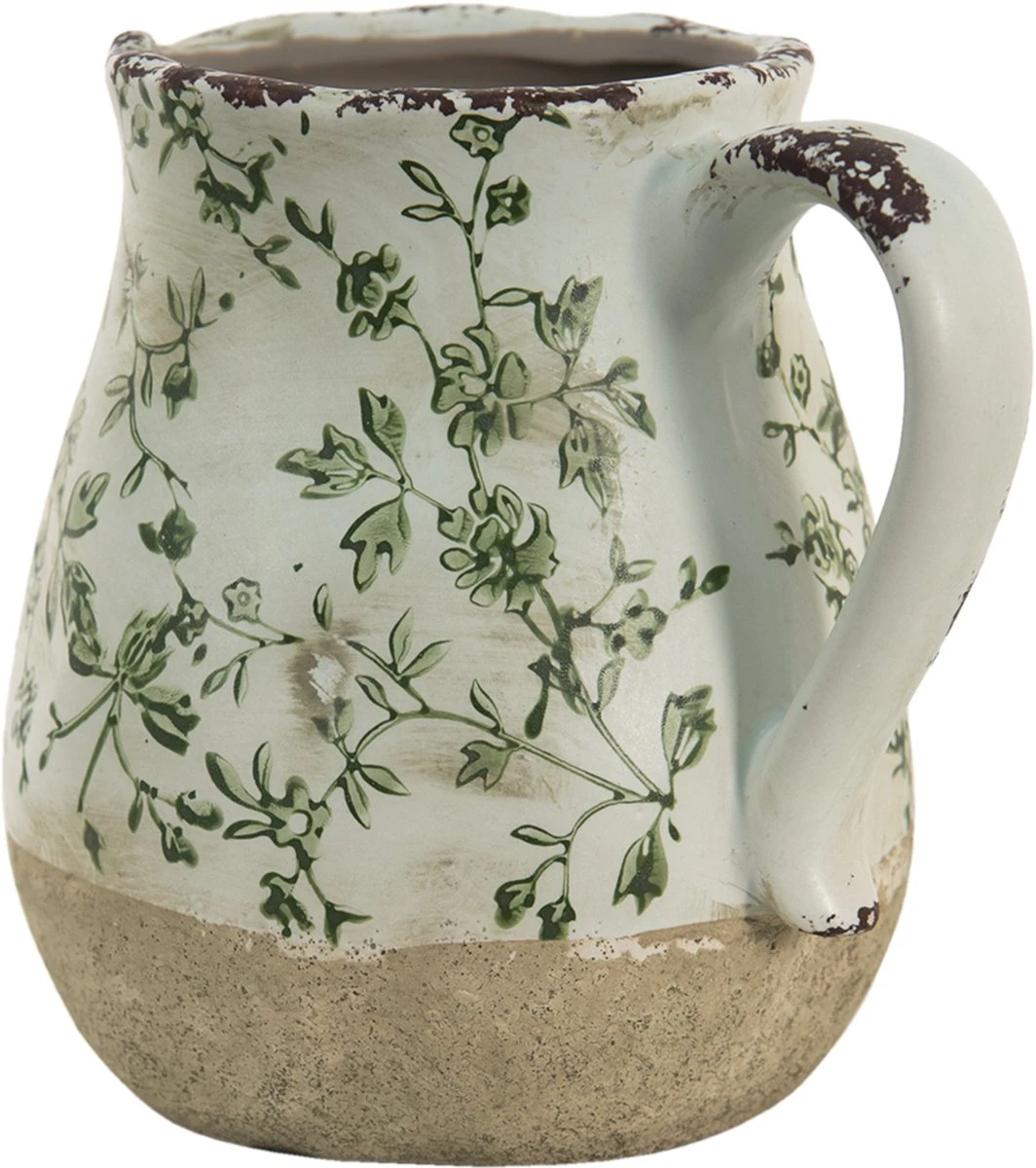 Landelijk Groen, Wit Decoratieve Schenkkan Waterkan Kan Blaadjes Keramiek. De inhoud is 1100 ml en de afmeting is 16*13*15 cm