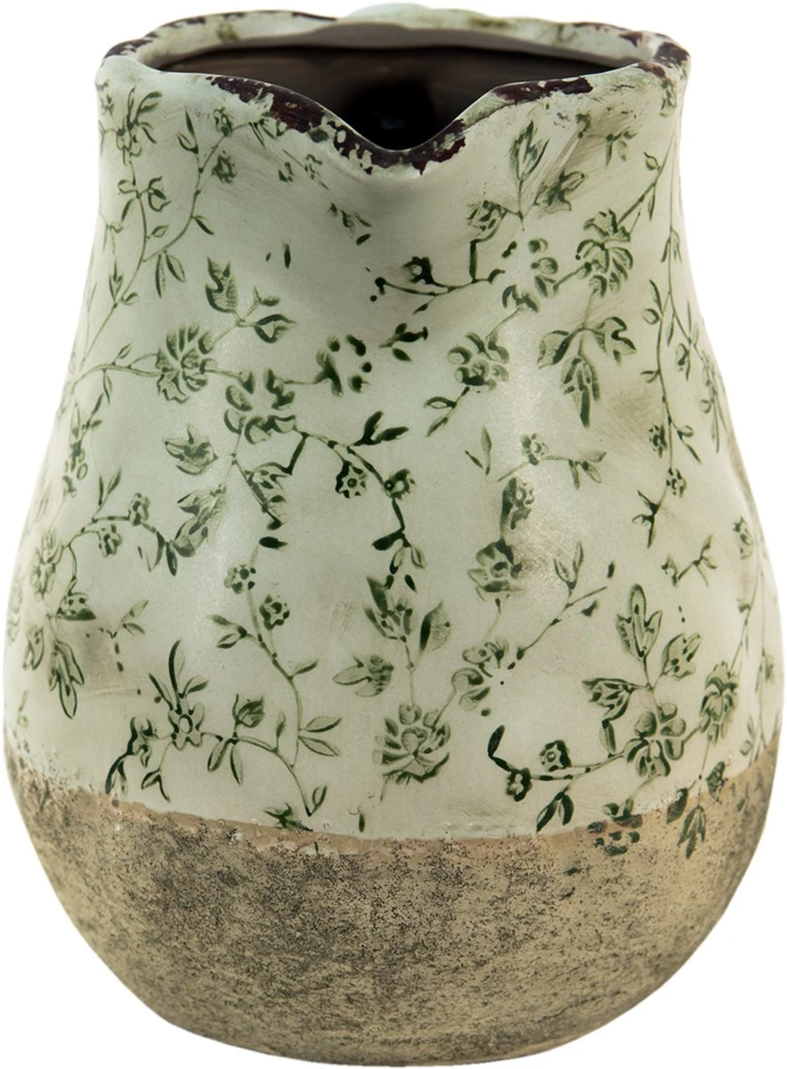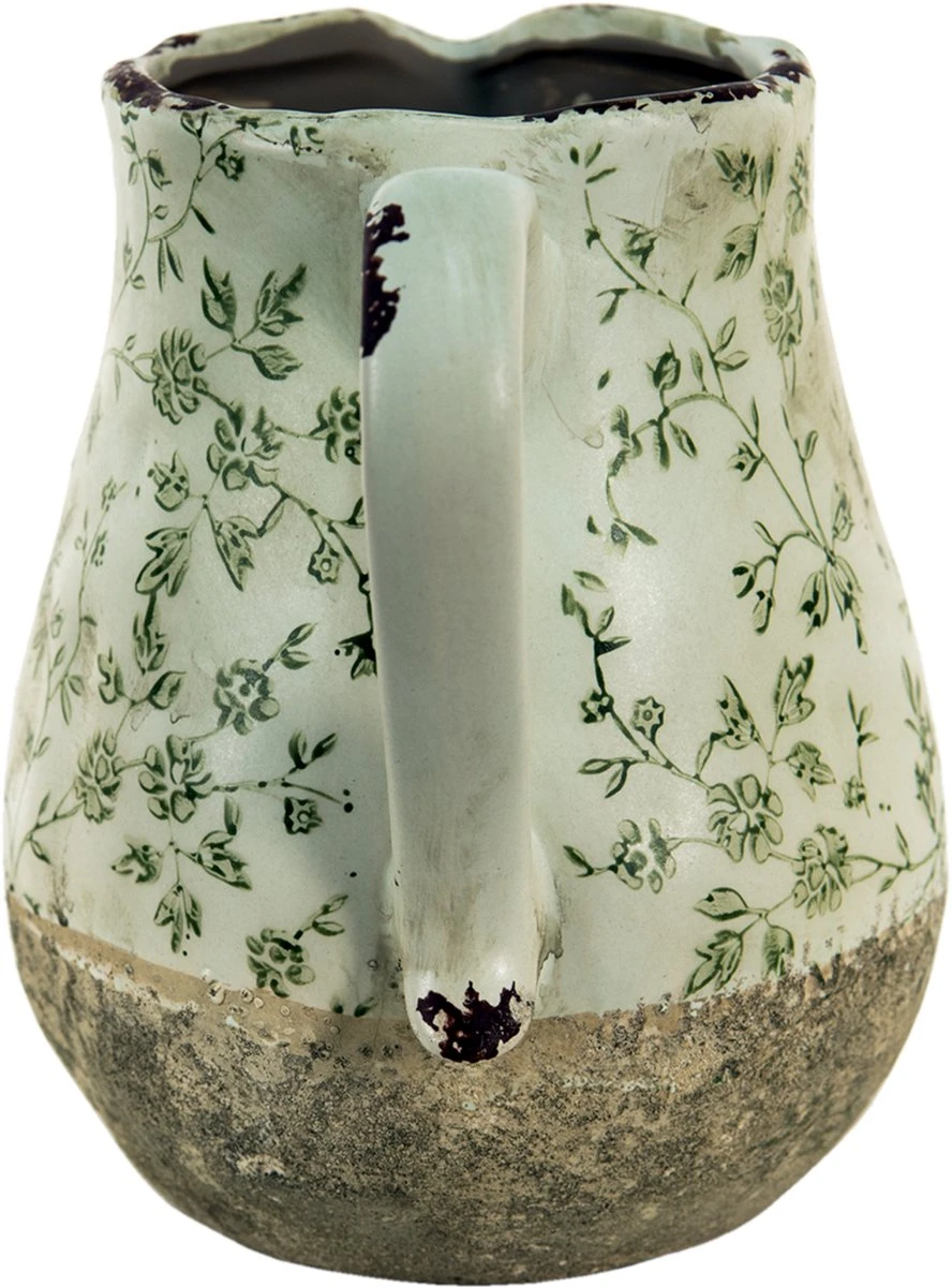 Landelijk Groen, Wit Decoratieve Schenkkan Waterkan Kan Blaadjes Keramiek. De afmetingen zijn 20*16*20 cm.