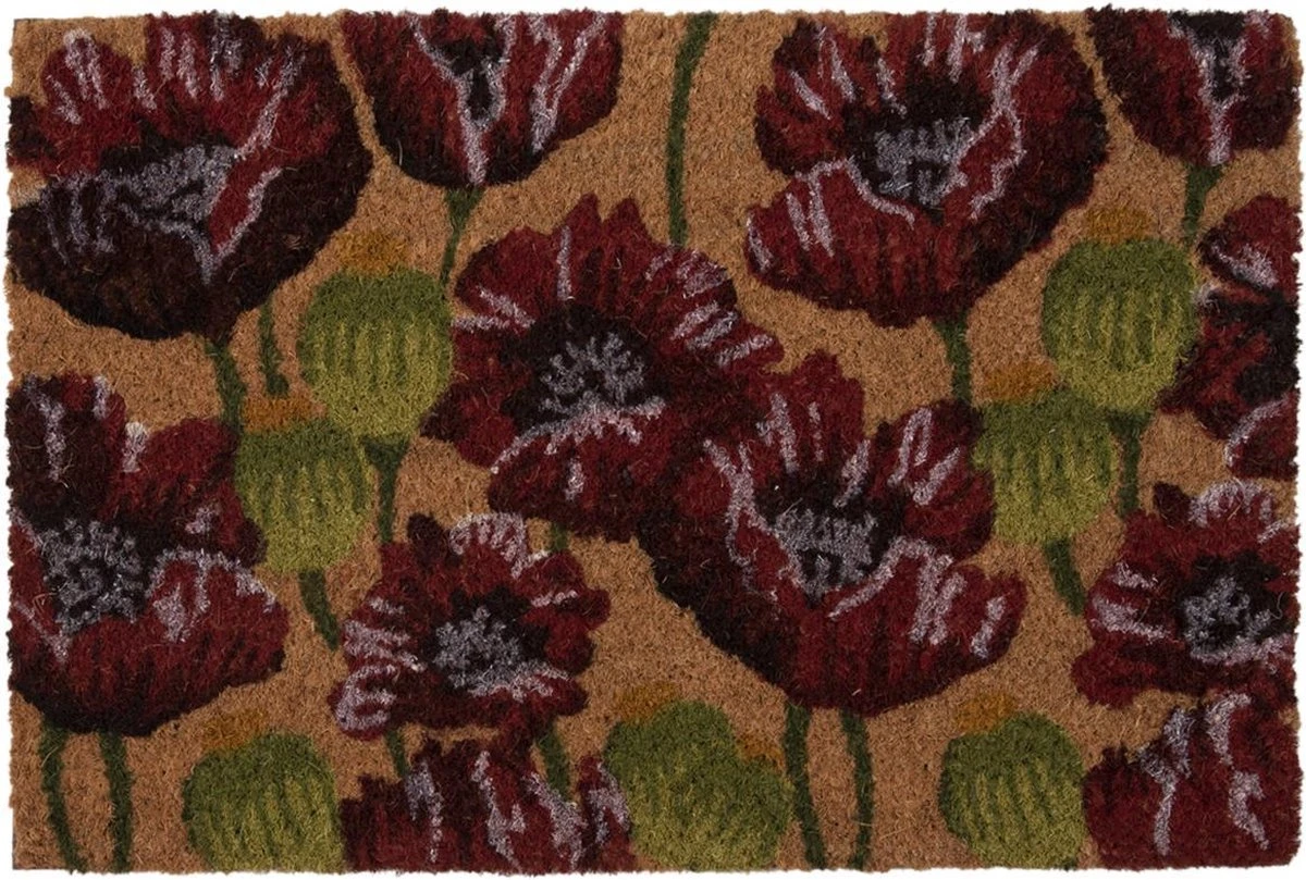 Kokosvezel deurmat met roode bloemetjes erop van het merk Clayre & Eef. Kokosmat Mat Schoonloopmat