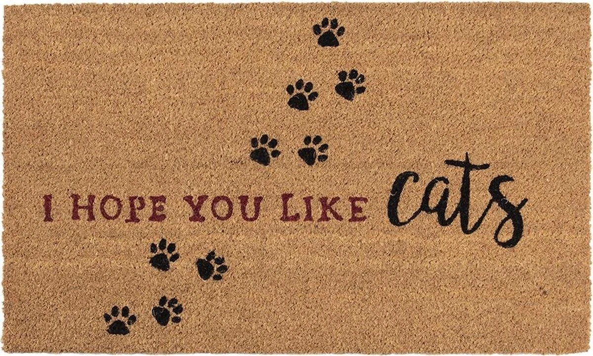 Bruin kokosvezel deurmat met rubber onderkant met de tekst I hope you like cats van het merk Clayre & Eef. Kokosmat Mat Schoonloopmat