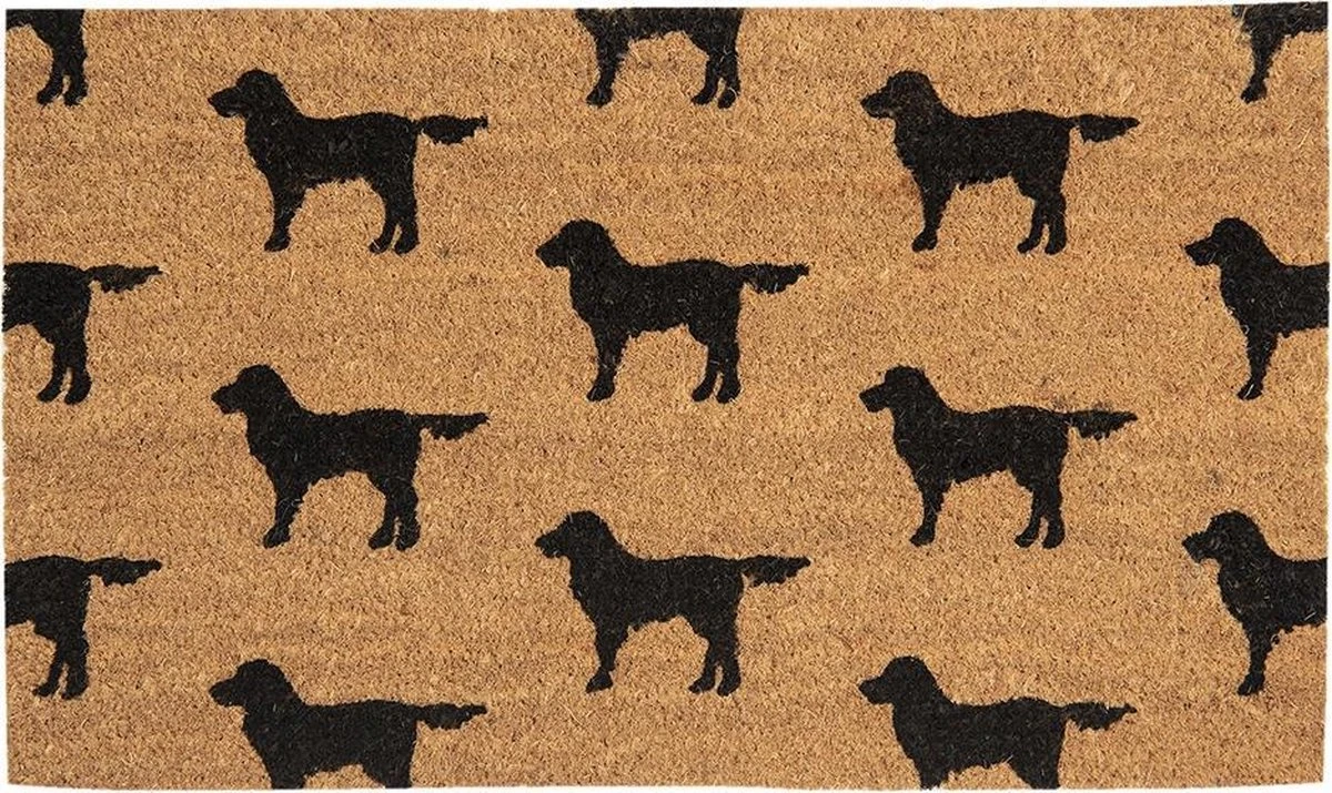 Bruine deurmat met zwarte honden van het merk Clayre & Eef. Kokosmat Mat Schoonloopmat