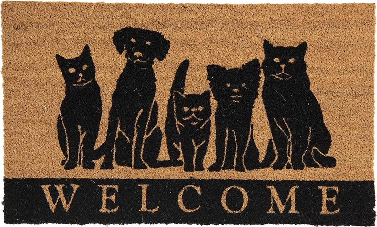 Bruin zwarte deurmat met dieren erop en de tekst ‘Welcome’ van het merk Clayre & Eef. Kokosmat Mat Schoonloopmat