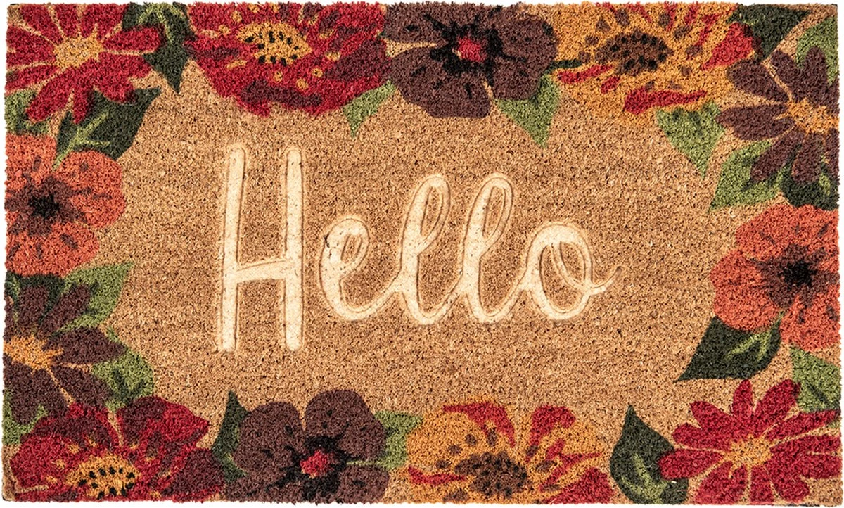Bruine kokos deurmat met gekleurde bloemen van het merk Clayre & Eef. Kokosmat Mat Schoonloopmat