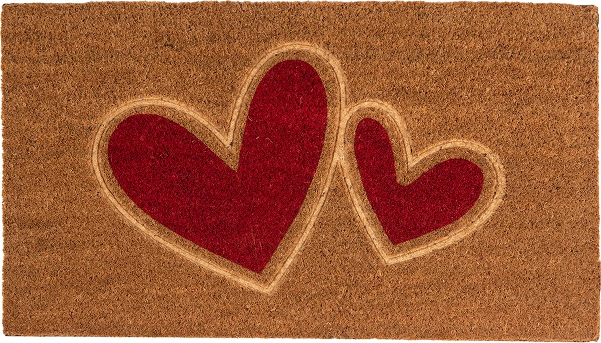 Bruin met rode kokos deurmat met twee hartjes van het merk Clayre & Eef. Kokosmat Mat Schoonloopmat