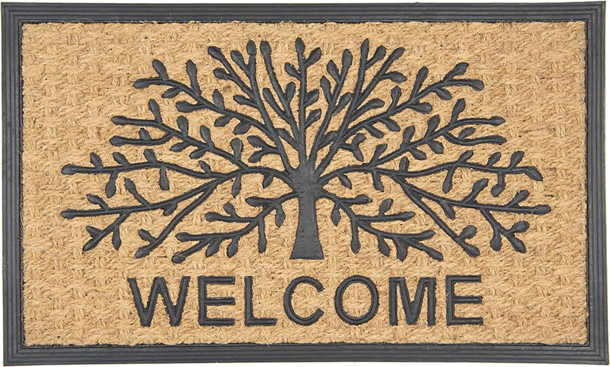 Landelijk bruin met zwarte kokosvezel deurmat met een boom en met de tekst ‘Welcome’, van het merk Clayre & Eef. Kokosmat Mat Schoonloopmat