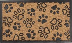 Kokosvezel deurmat met rubberen rand met de hondenpootjes als motief van het merk Clayre & Eef. Kokosmat Mat Schoonloopmat