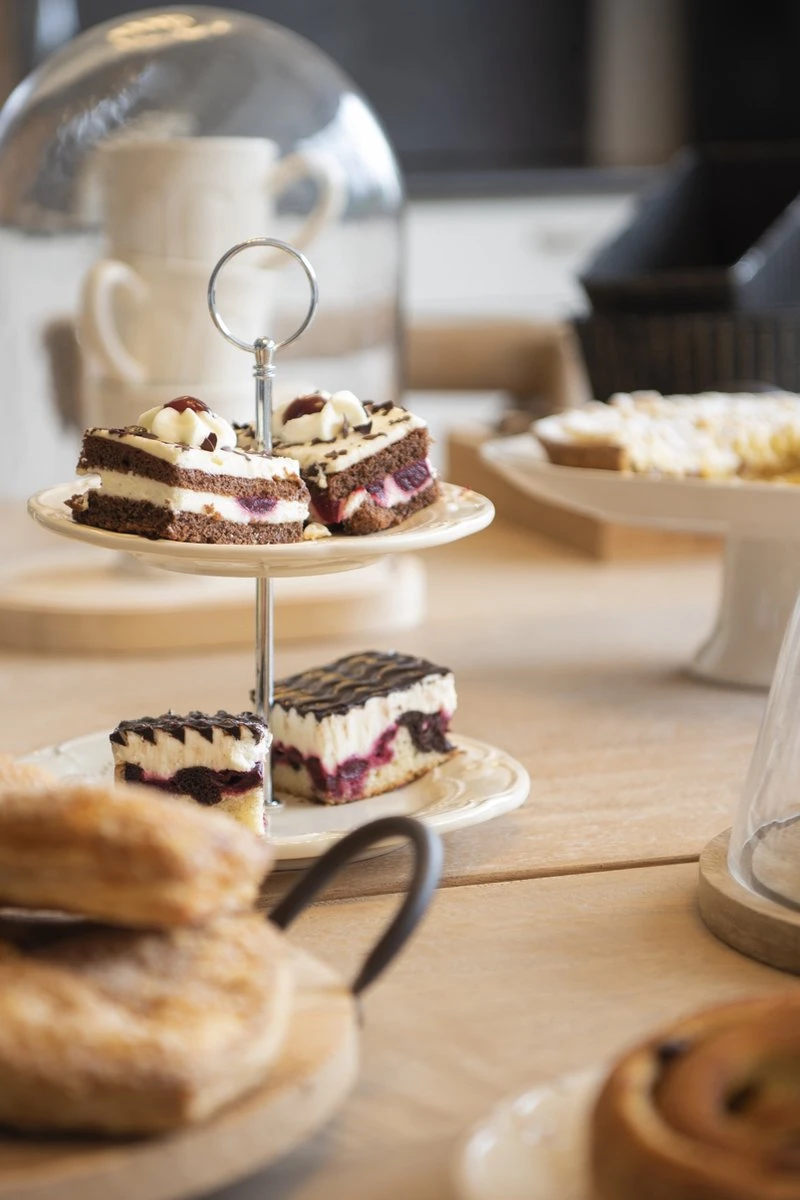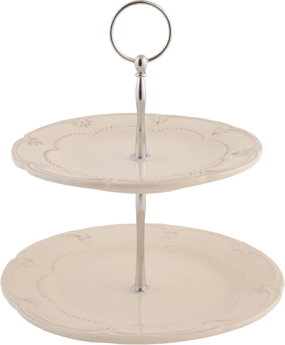 Beige etagère met roosjes en twee plateaus van het merk Clayre & Eef Taartplateau Serveerschaal