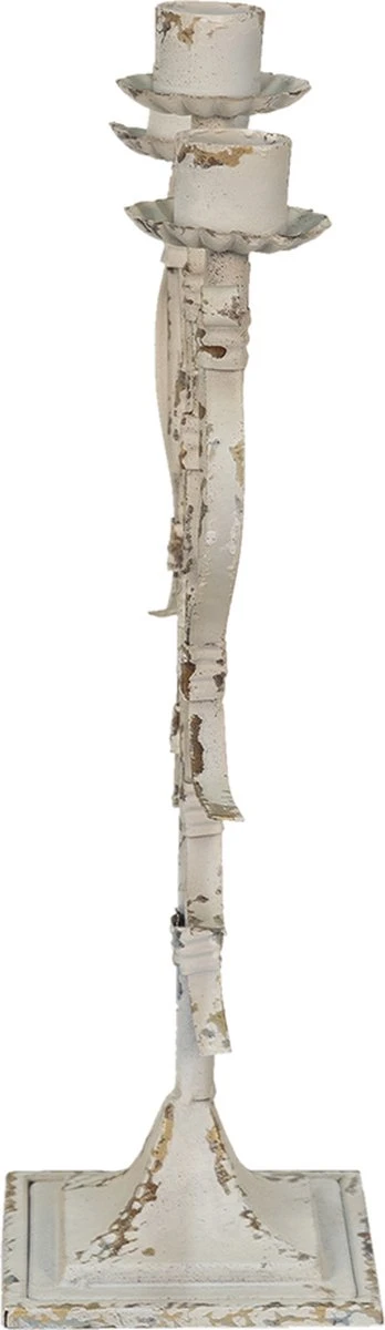 Landelijke bruin met witte metalen kandelaar voor drie kaarsen van het merk Clayre & Eef.