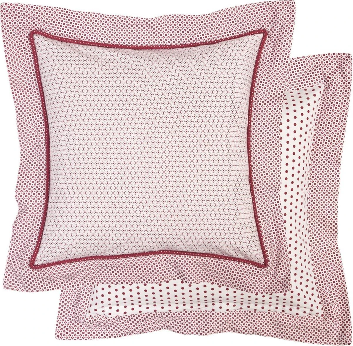 kussen hoes 40 x 40 van het merk Clayre & Eef. Materiaal: katoen Artikelnummer: DOT22R. Stippen en stipjes in wit met rood
