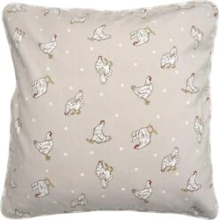Beige landelijke hoes voor sierkussens met kippen erop en een beige rand van het merk Clayre & Eef Sierkussenhoes Kussen hoes
