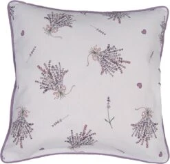Kussenhoes van het merk Clayre & Eef.Lavendel motief in romantische stijl met een landelijke uitstraling. Sierkussenhoes Kussen hoes
