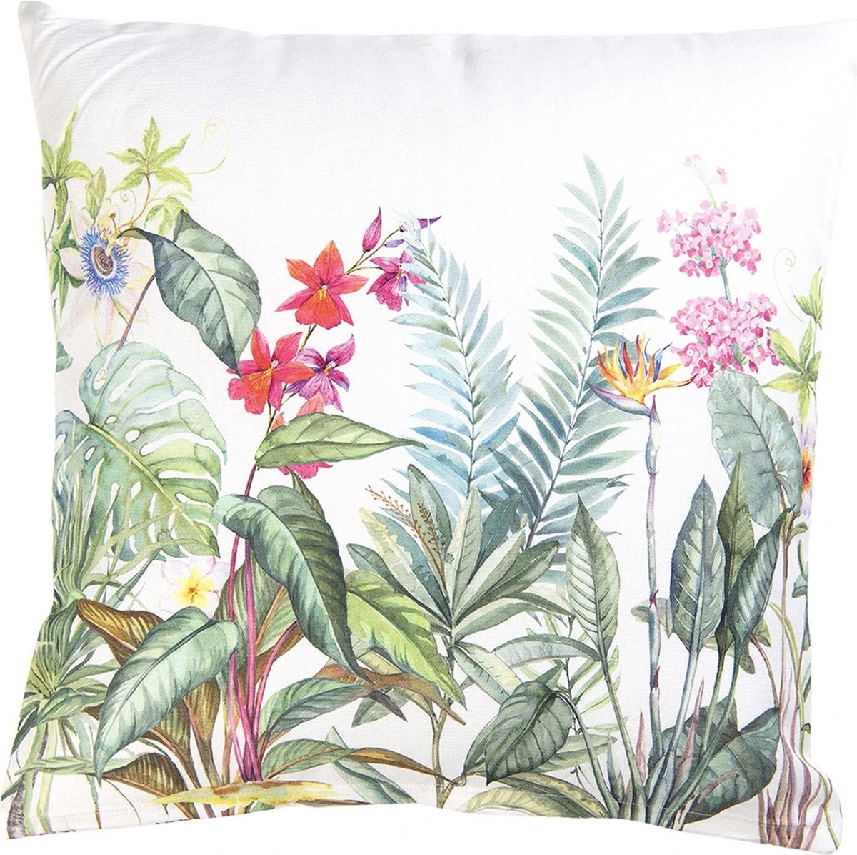 Witte landelijke hoes voor sierkussens met kleurrijke bloemen van het merk Clayre & Eef Sierkussenhoes Kussen hoes