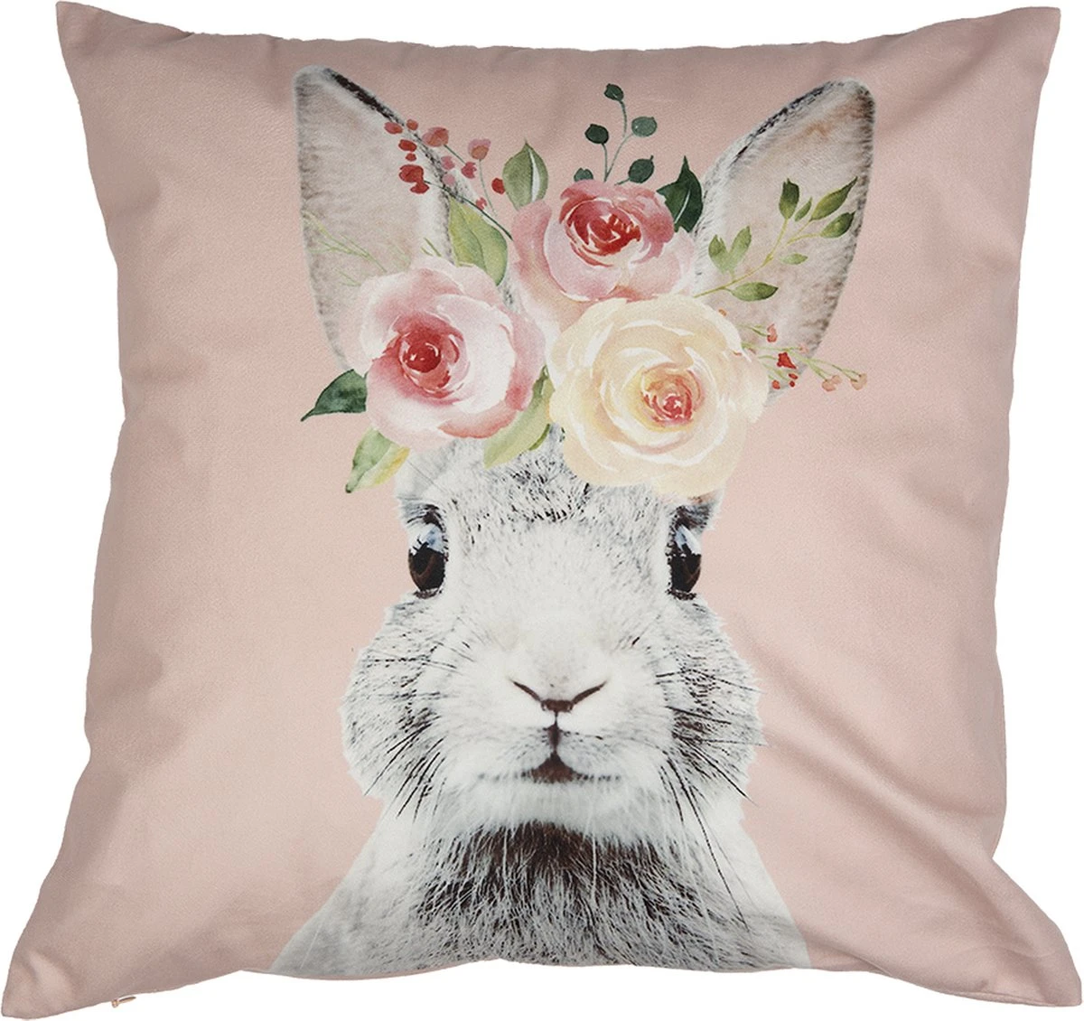 *Sierkussenhoes van het merk Clayre & Eef.*Konijn als motief in een landelijke stijl met een romantische uitstraling.*Een mooi decoratief kussen geeft altijd een gezellige warme sfeer in je huis. *Leuk met Pasen. Sierkussenhoes Kussen