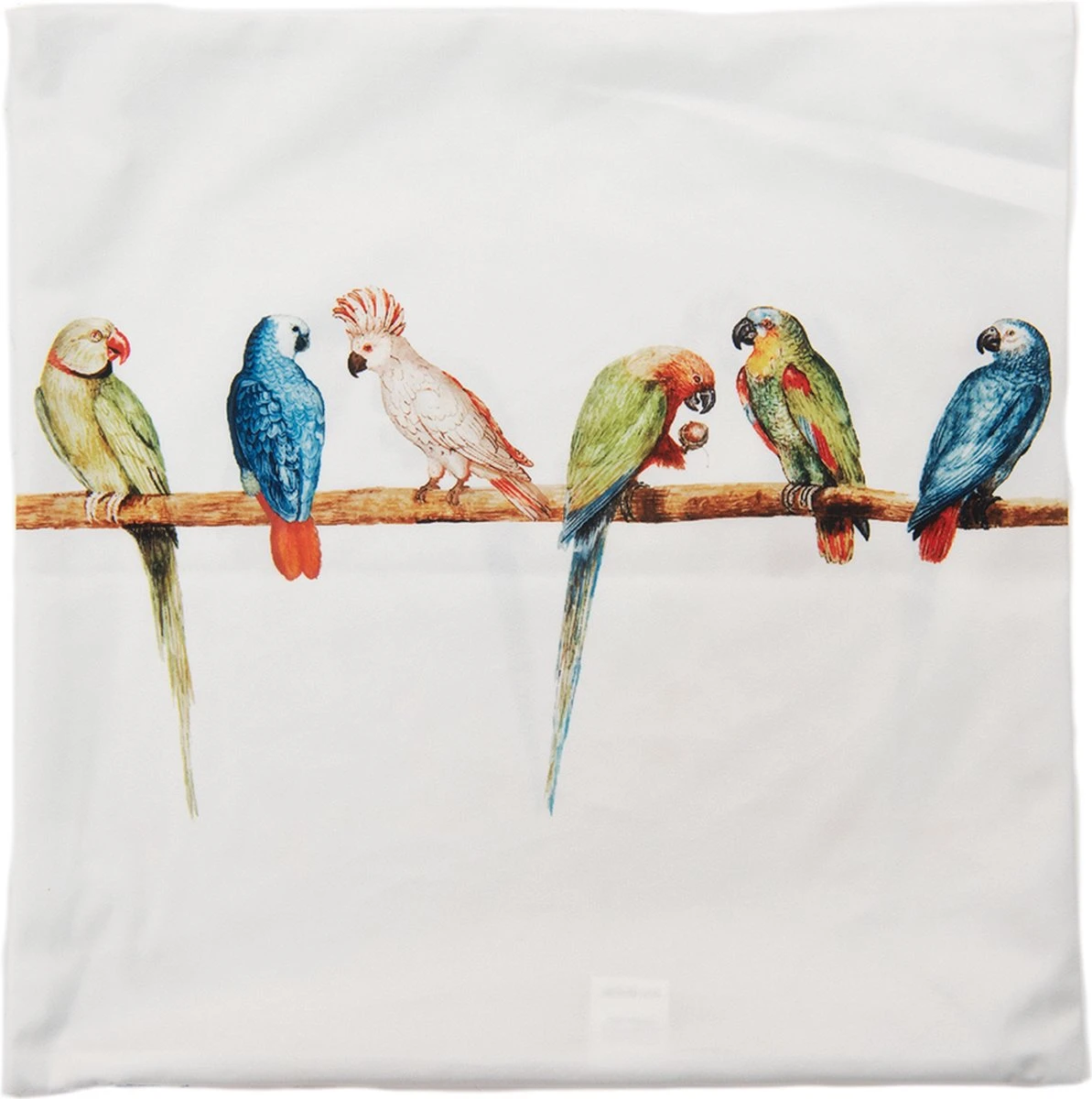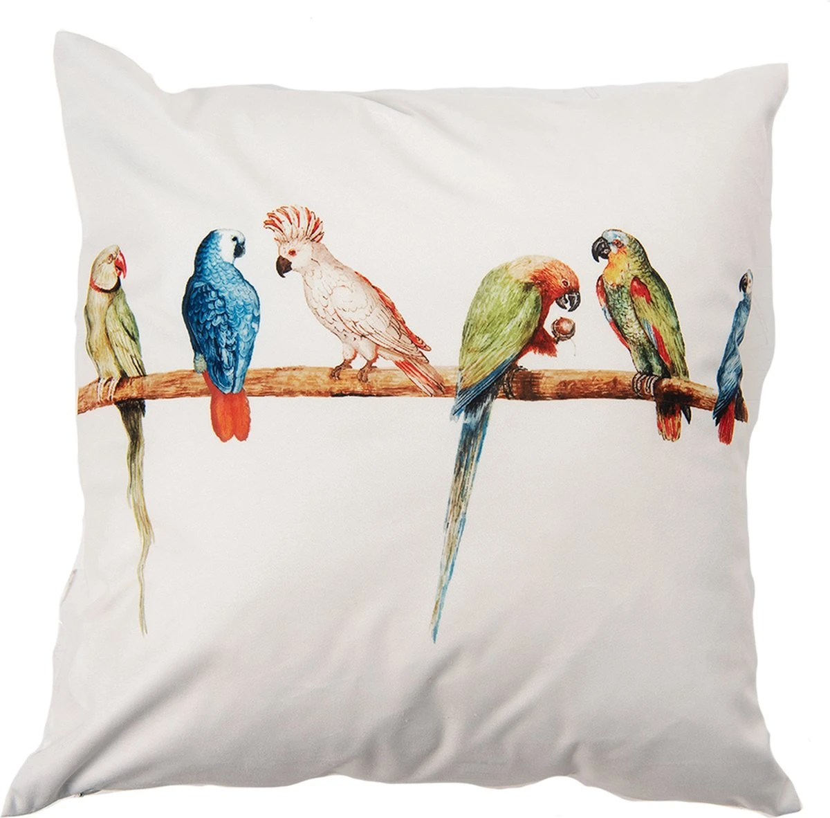 *Sierkussenhoes van het merk Clayre & Eef.*Meerkleurige Papegaaien als motief in een landelijke stijl met een moderne uitstraling.*Een mooi decoratief kussen geeft altijd een gezellige warme sfeer in je huis . Sierkussenhoes Kussen