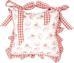 Wit landelijke stoelkussen met appeltjes en rood wit geblokte ruches van het merk Clayre & Eef Sierkussen Kussensloop Kussenbeschermer