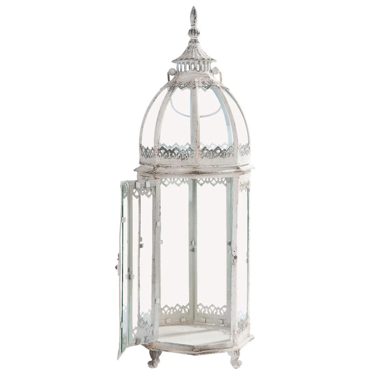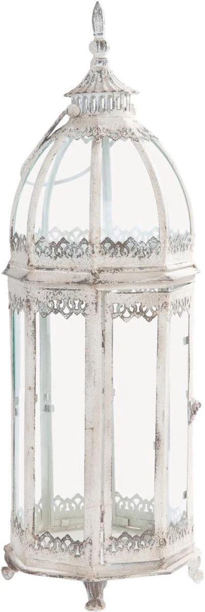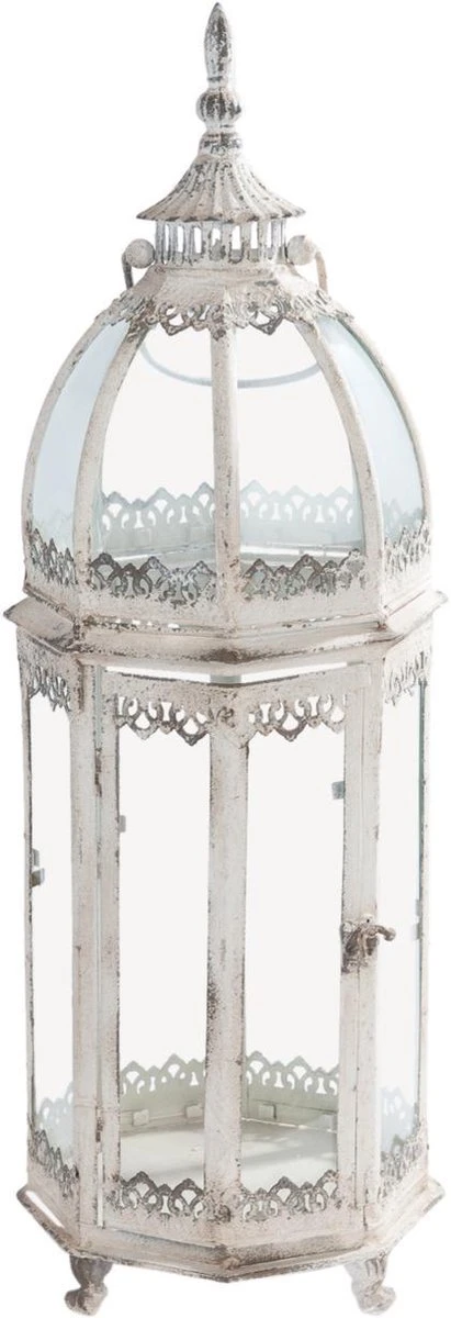 Wit metalen vintage lantaarn met krullen decoratie op pootjes van het merk Clayre & Eef