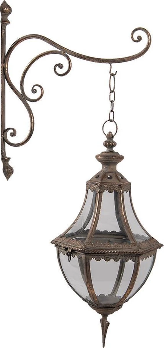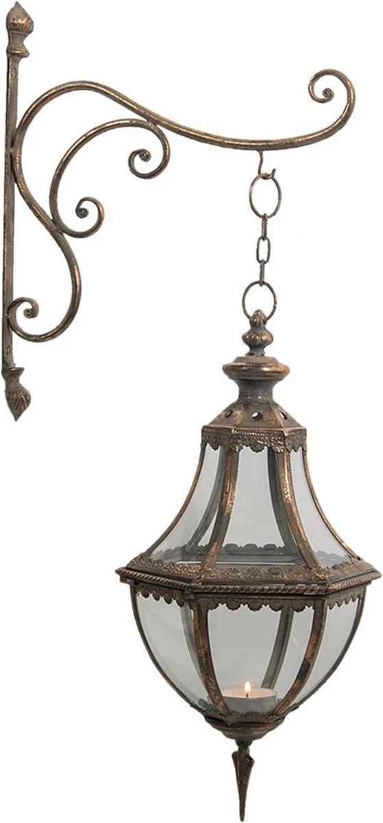 Koperkleurig klassiek landelijk metalen lantaarn van het merk Clayre & Eef. Kaarsenhouder Sfeerverlichting