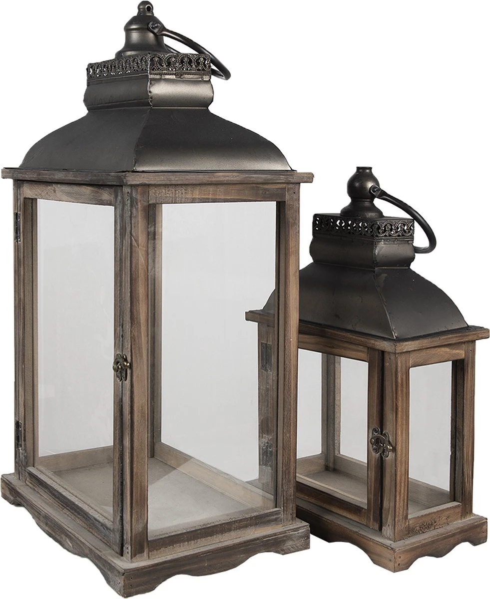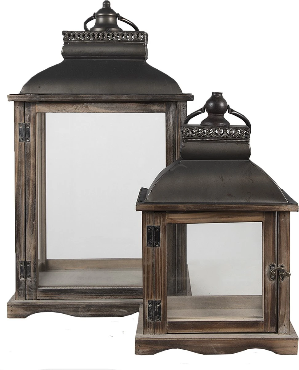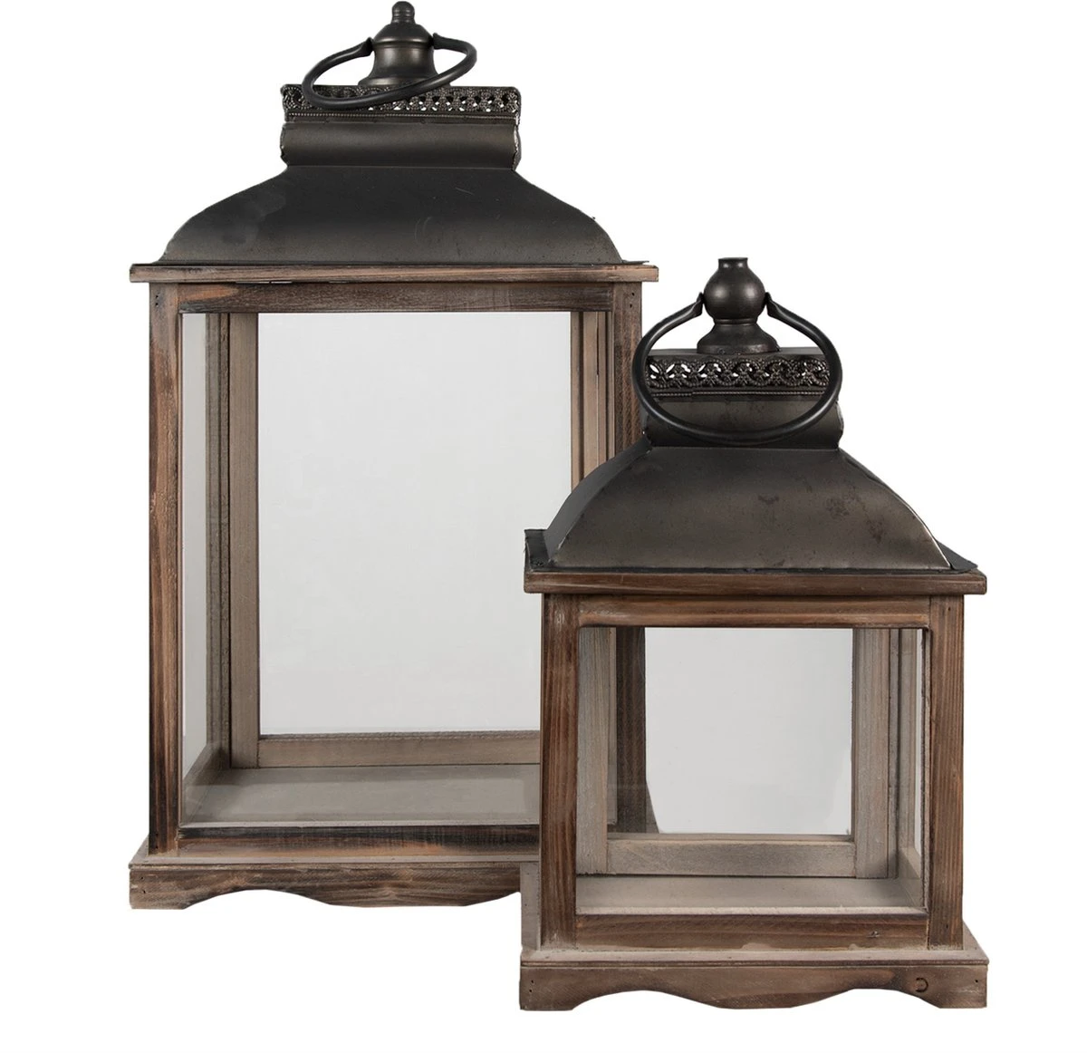 Landelijk Bruin Lantaarns Set van 2 Kaarsenhouder Sfeerverlichting Ijzer / glas / hout Rechthoek 34*22*60 / 26*14*42 cm