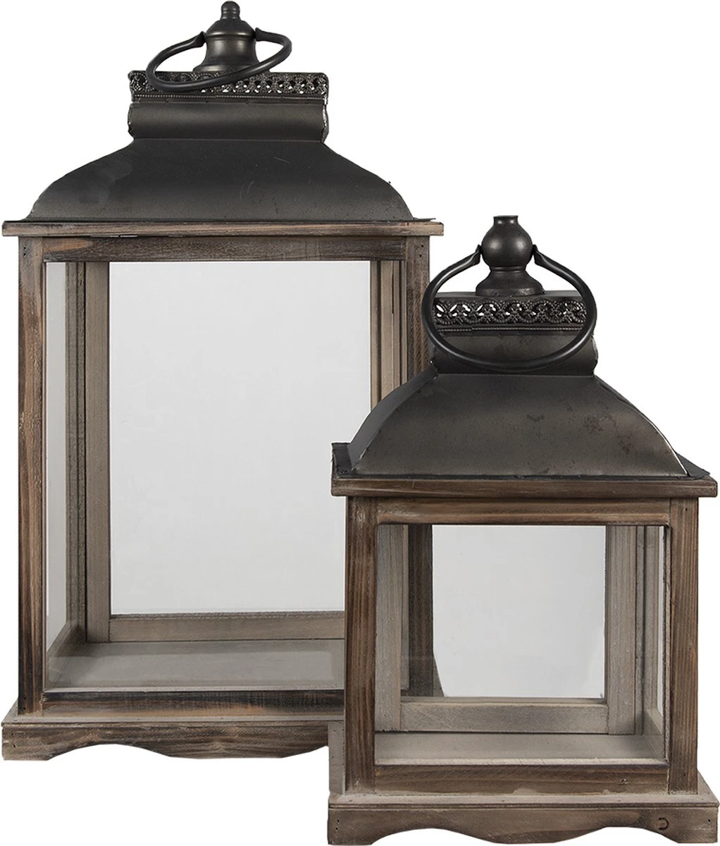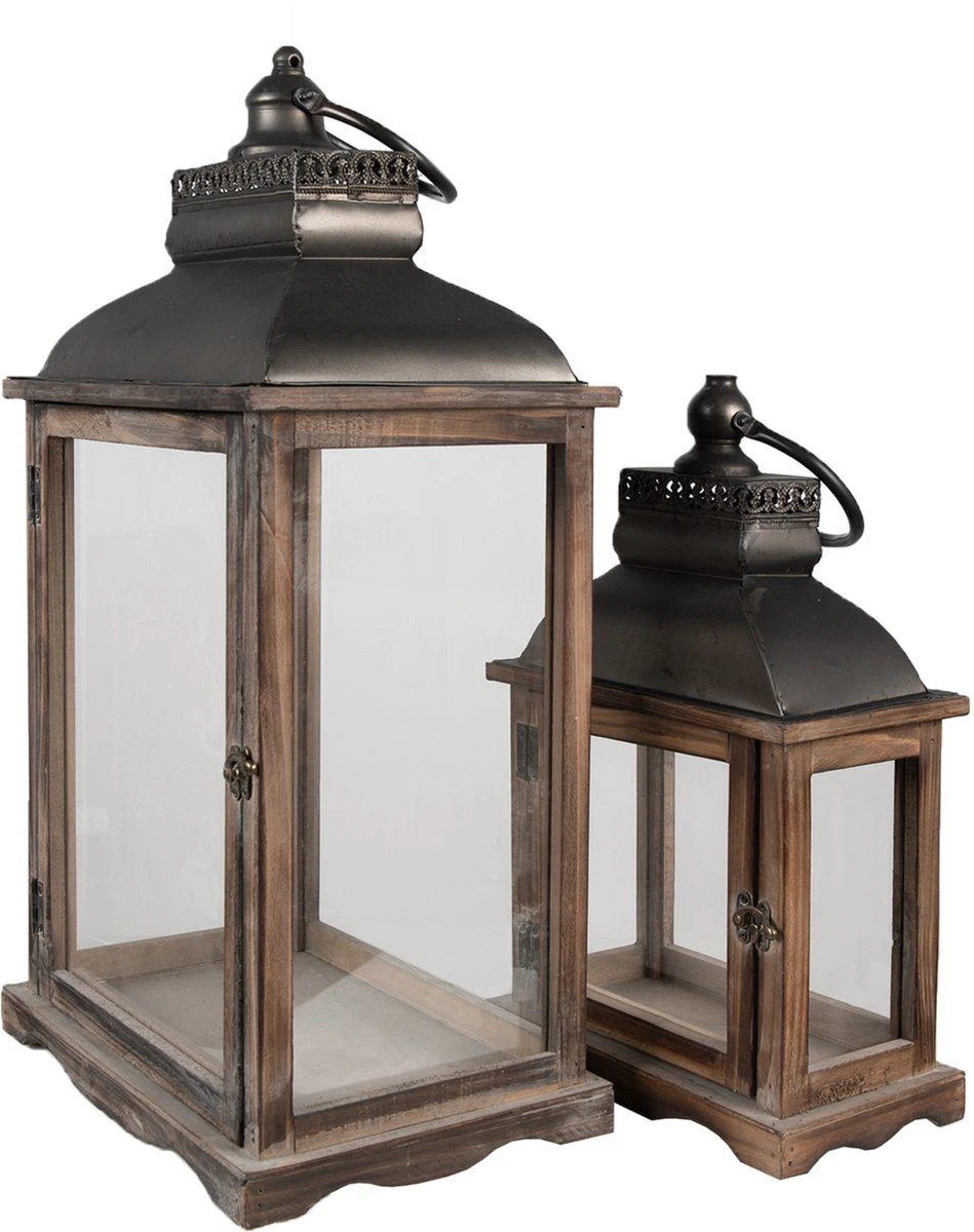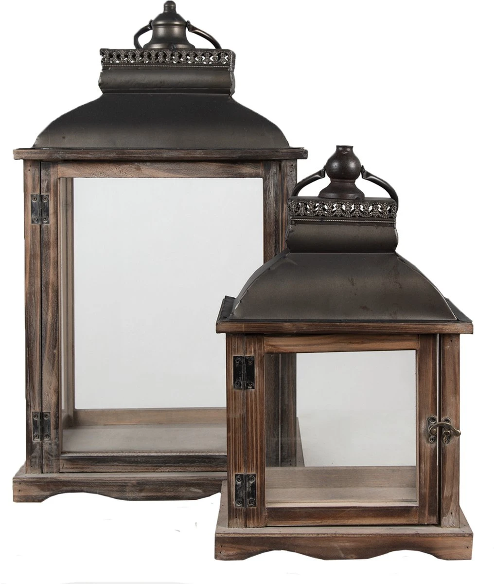 Landelijk Bruin Lantaarns Set van 2 Kaarsenhouder Sfeerverlichting Ijzer / glas / hout Rechthoek 34*22*60 / 26*14*42 cm
