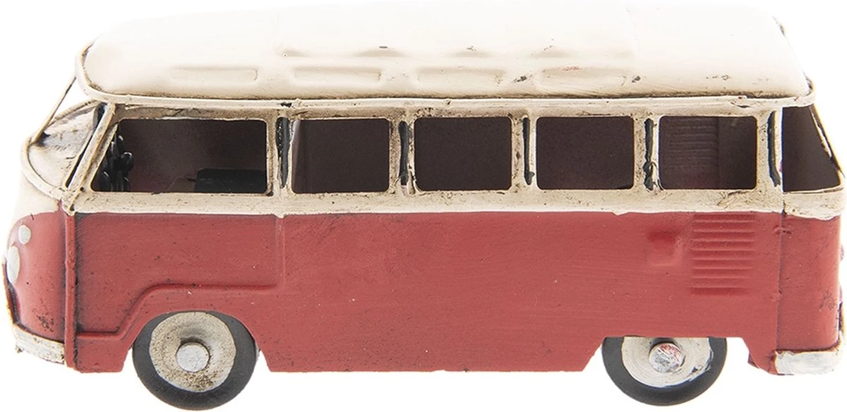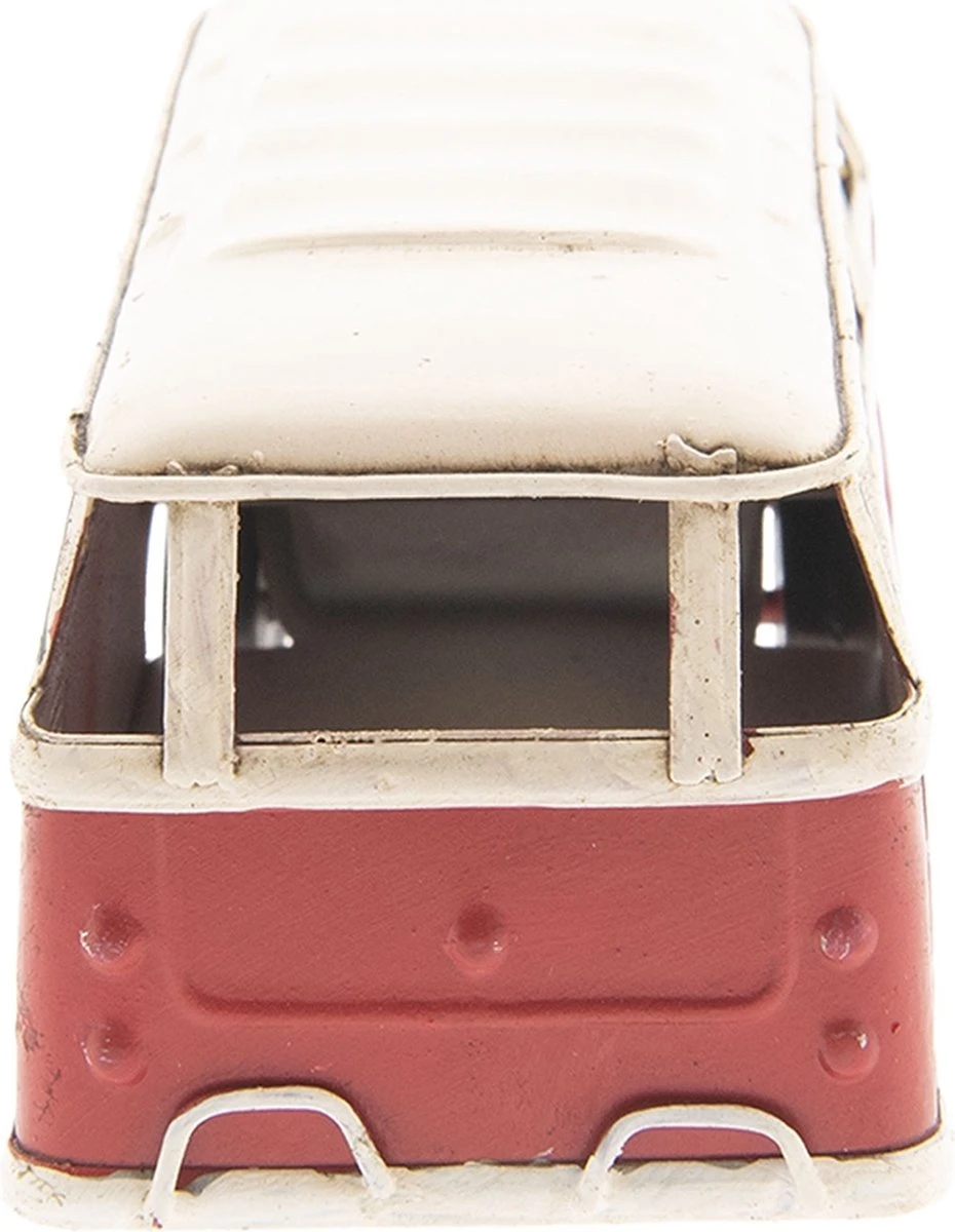 Vintage staand ijzeren rood-wit VW camper voor decoratie van het merk Clayre & Eef Miniatuur VW Bus Miniatuur Auto