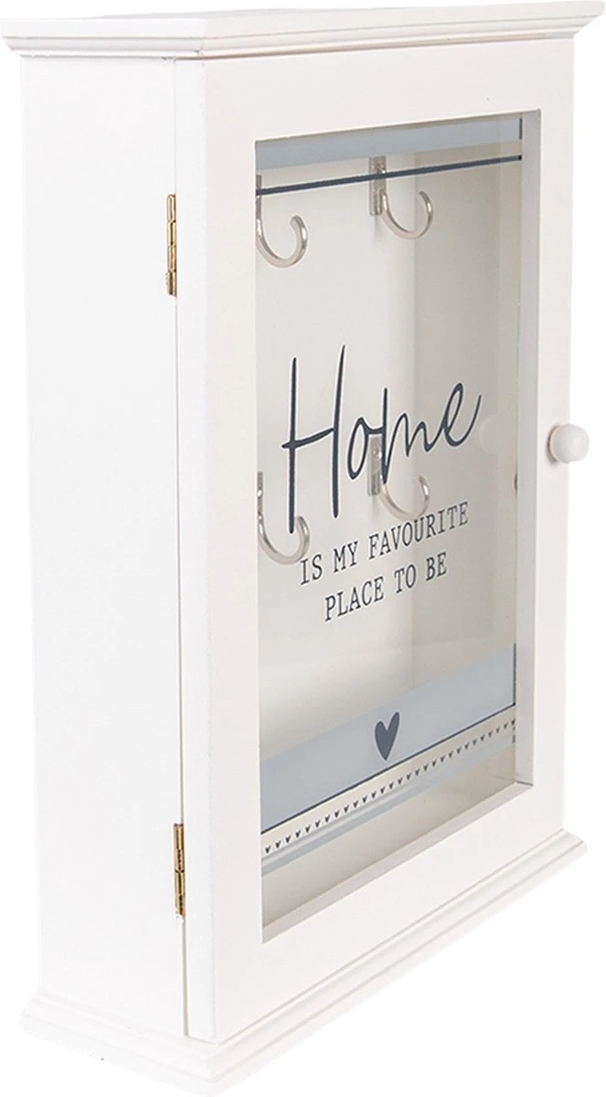 Mooi wit houten landelijk sleutelkastje voor 6 sleutels van het merk Clayre & Eef. Het deurtje heeft een magneetsluiting. Sleutelhouder Sleutelrekje Wandkast