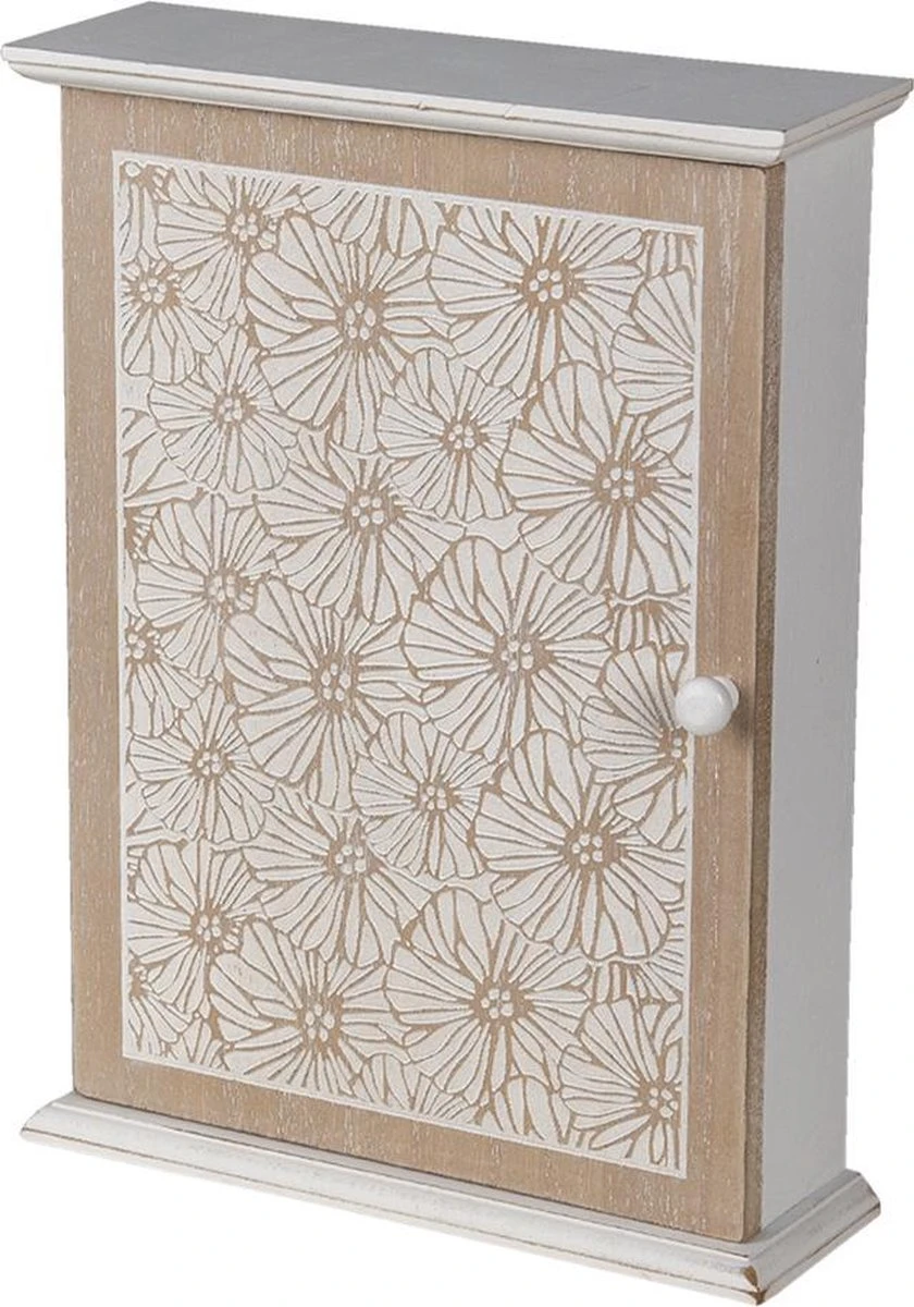 Landelijk romantisch bruin/wit houten sleutelkastje van het merk Clayre & Eef.