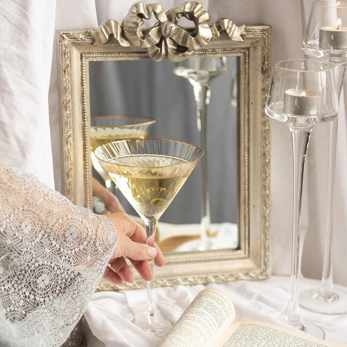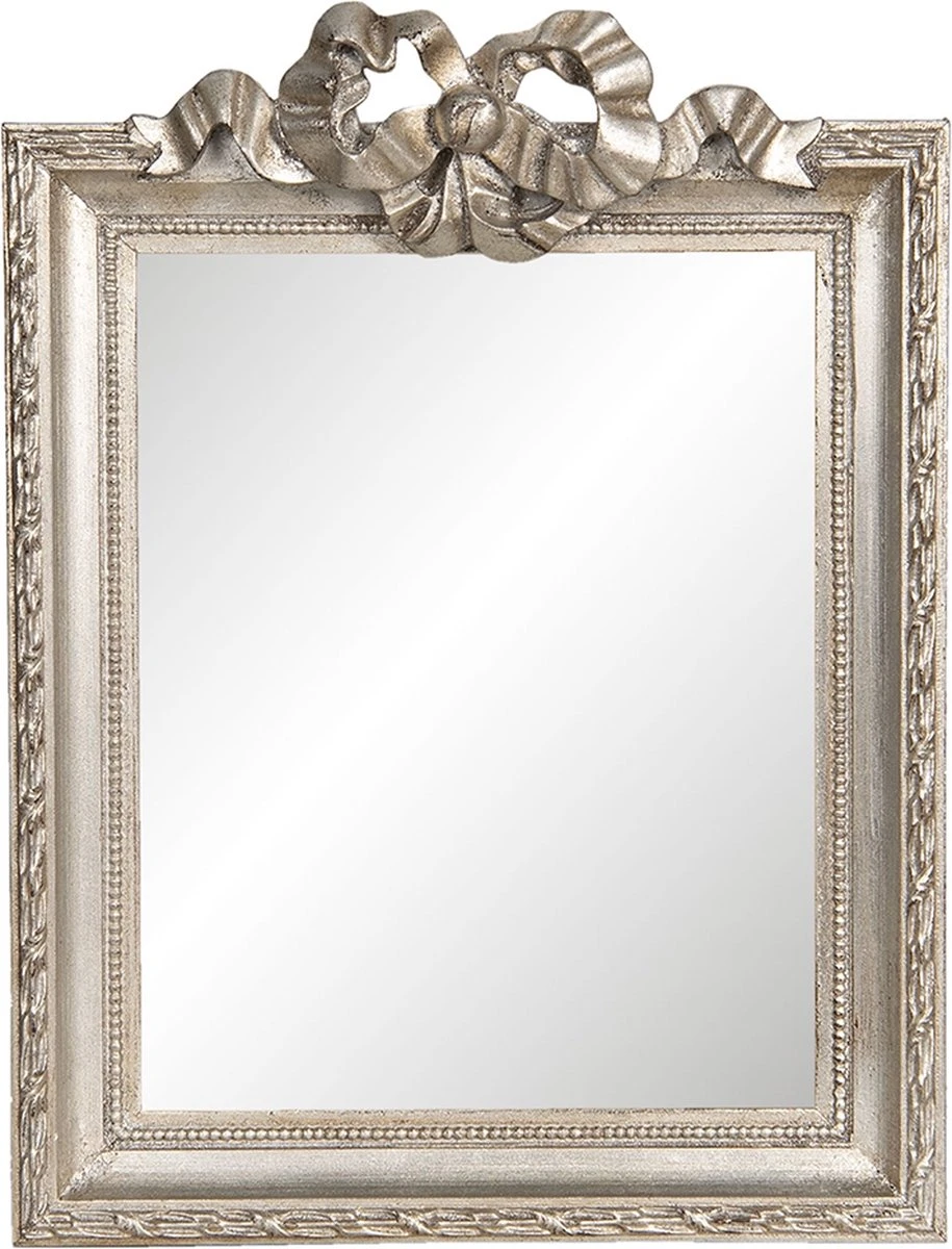 Zilverkleurige landelijke rechthoekige spiegel met een strik erop van het merk Clayre & Eef Grote Spiegel Wand spiegel Muur spiegel