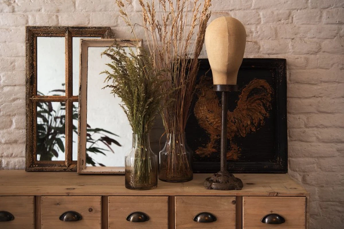 Landelijk Beige Wandspiegel Grote Spiegel Muur Spiegel Wand Spiegel Hout / glas Rechthoek