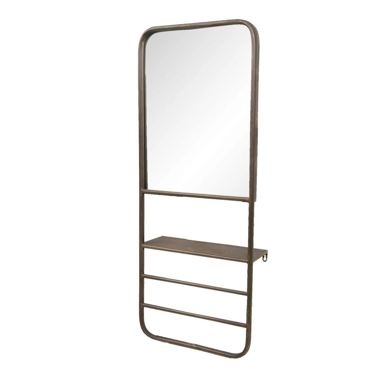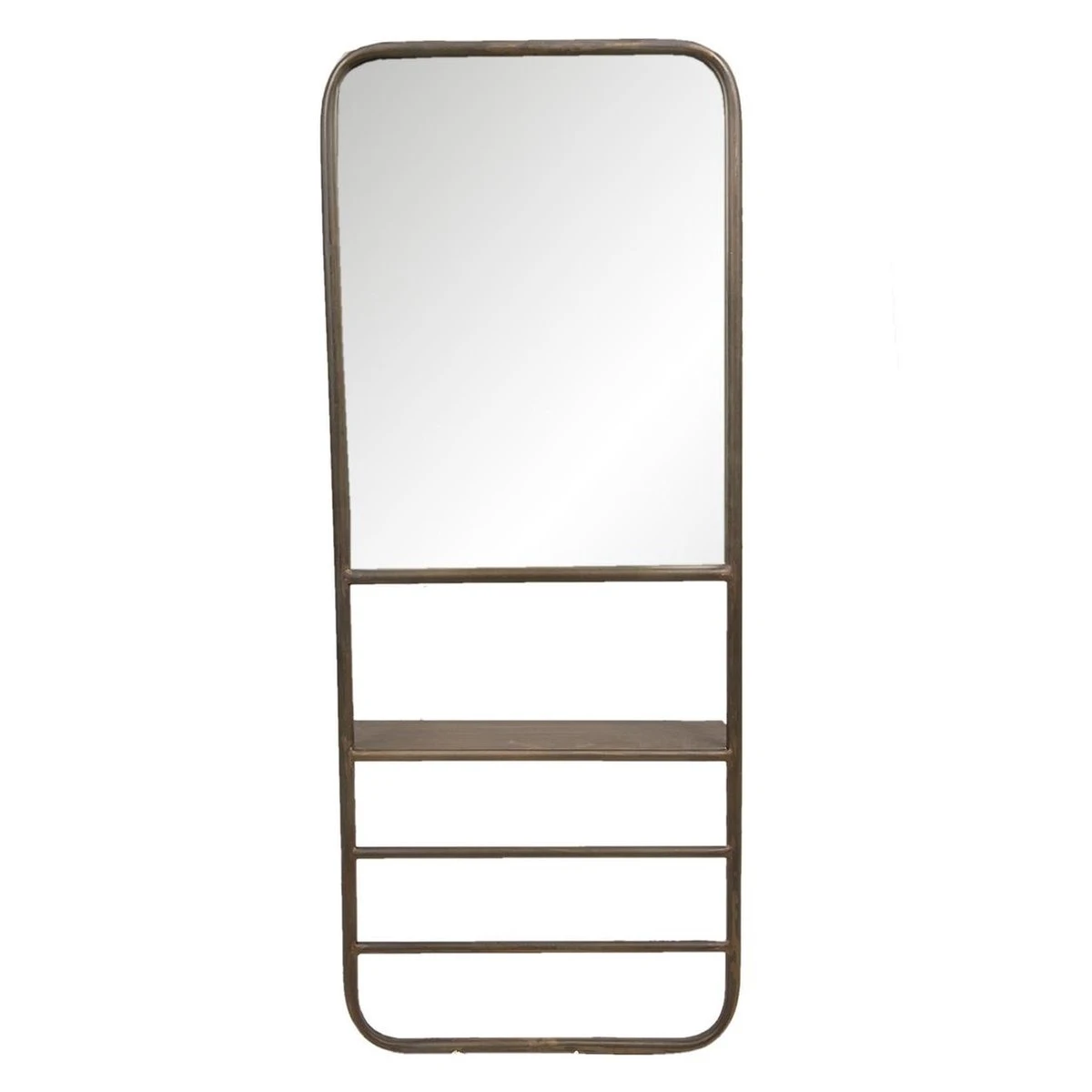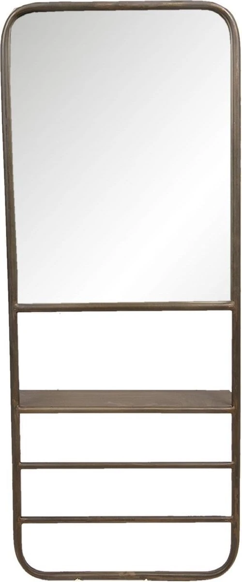 Koperkleurig metalen rechthoekige industriële spiegel met een rekje eronder van het merk Clayre & Eef Grote Spiegel Wand Spiegel Muur spiegel