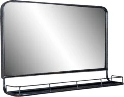Zwart metalen rechthoekige industriële spiegel met een rekje eronder van het merk Clayre & Eef Grote Spiegel Wandspiegel Muur spiegel